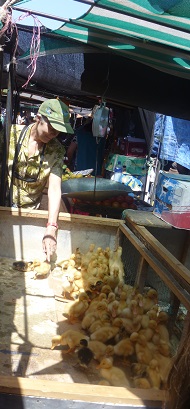 The weather in Talca is like August in the US, cool in the morning and evening and very warm during the day–today’s high was 33 C (91 F). On Saturday, we visited the market in Chillan, a town to the south. It was more than a square block, with booths selling fruit, vegetables, meat, fish & shellfish, clothing, household goods, even some souvenirs. I couldn’t resist petting the ducklings.