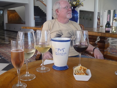 We chose Casas del Bosque as our last stop because it was described as in Casablanca. The rest of the directions said turn onto Padre Hurtado and follow the signs. These took us back out of town, but we did find the vineyard. They have a large restaurant that was busy and also had a number of tastings underway, and a nice gift shop to browse in while you waited for your place to be ready. Our hostess was an interesting young woman who spoke creditable English, and when I asked her about it, she said she learned at school and had never been out of Chile. She hopes to study abroad in France, where she has some relatives in the wine industry. Jean-Benoit encouraged her to learn French and go for it. She answered all our questions, even after being somewhat intimidated by our collective knowledge of wine and languages, but when Jonathan asked whether he could try Carmenere that wasn’t on our tour, she agreed and even opened a new bottle. No one has been as gracious.