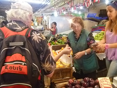After stocking up on fruit, vegetables, meat, dried fruit, peanuts, olives and pickles, we returned to stow all our shopping in the car, before going on to the next market.