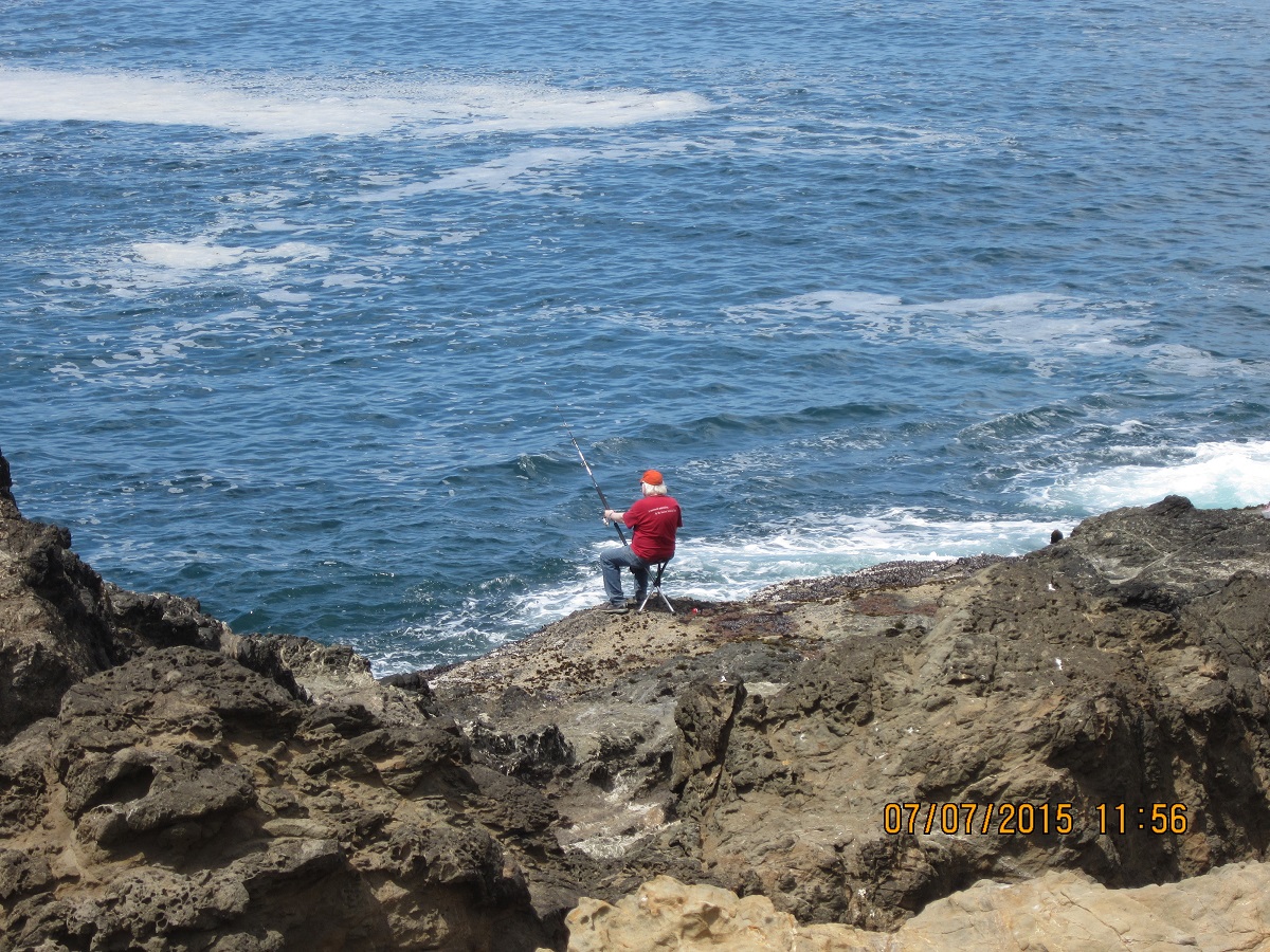 We decided to try fishing again, this time at Caspar Headlands, a place we’ve driven past. Reading about this area we found that a temporary pass is required, so we stopped by the Headquarters Building on the East side of Route 1 at Russian Gulch and were able to collect the required paper. Caspar Headlands is a relatively small area, state lands with access to the shore through a residential neighborhood. There are good places to fish and a lot to look at.