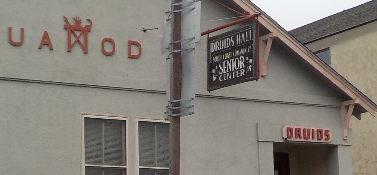We made an interesting discovery on our way out of town. In Point Arena, the Senior Center and the Druids meeting house are the same place….