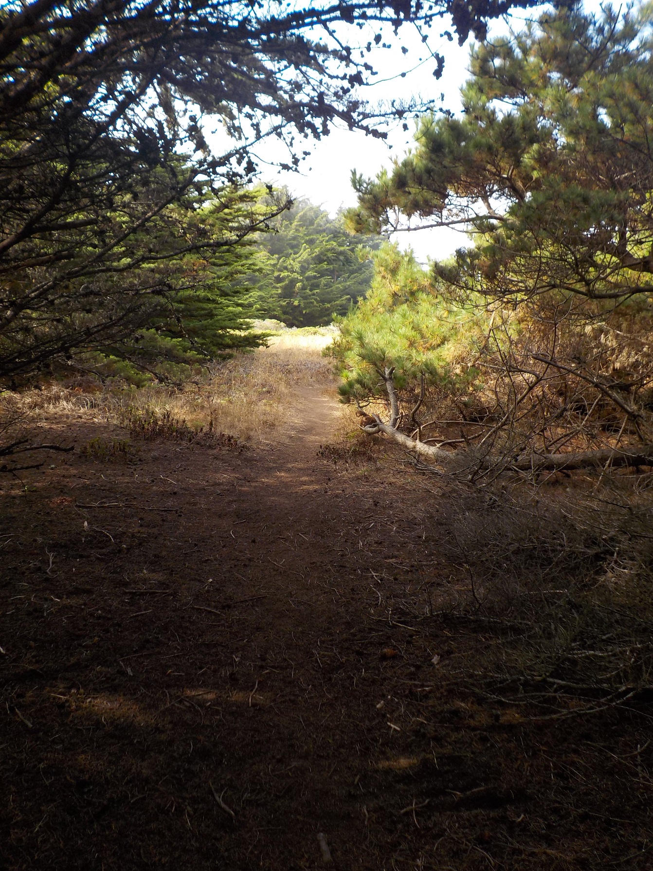 All summer we’ve walked on the California Coastal Trail (CCT) and related paths that run along the coast. At Jughandle State Park, I followed a trail away from the bluffs toward a cluster of pine trees where I thought there might be some woodpeckers,