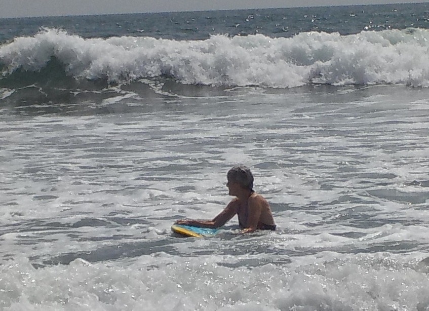 The only other person who likes to catch the waves with a body board is 9 years old.