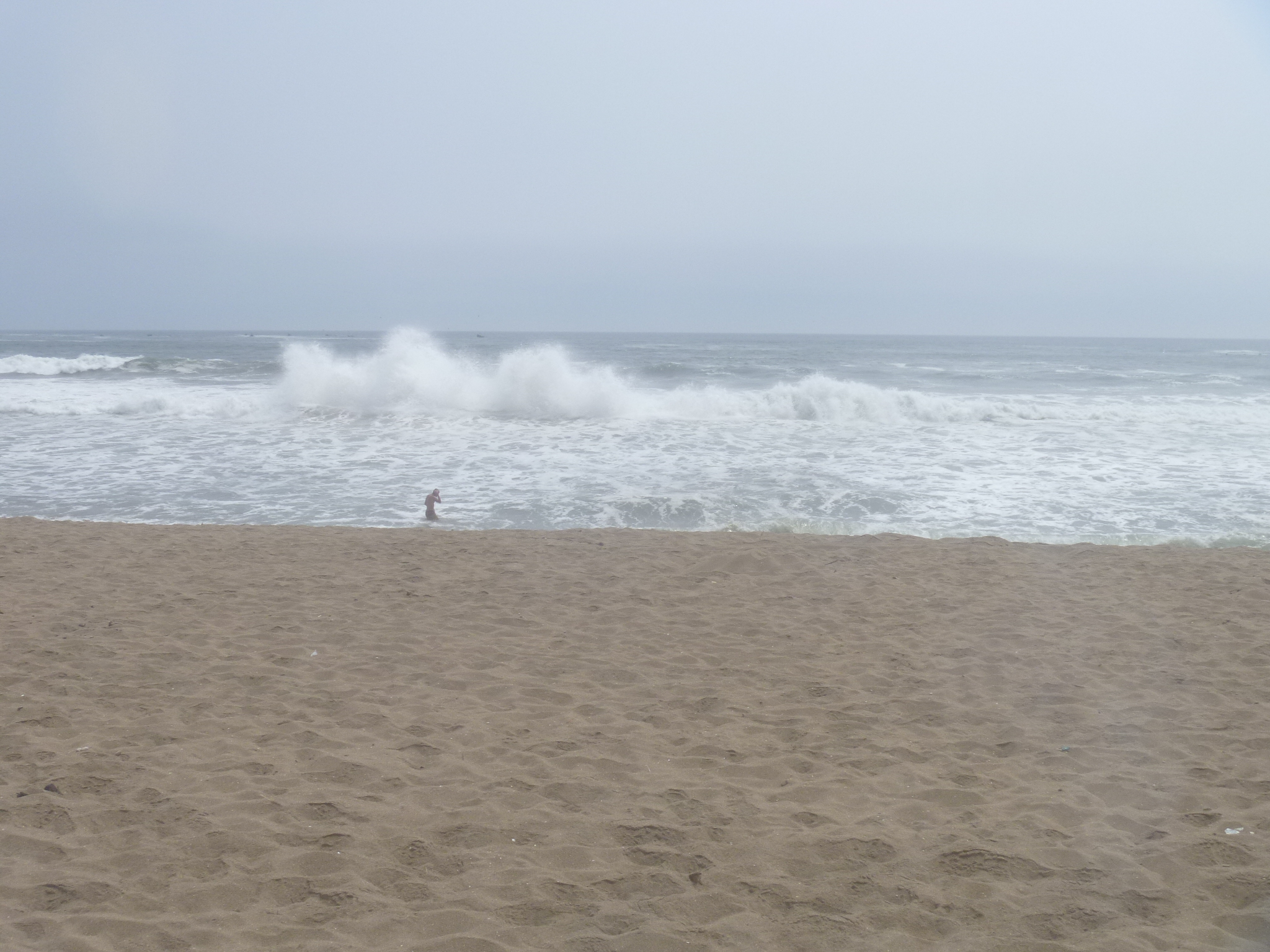 It’s been swimming weather, hot enough every day to go in, and the ocean not as frigid as most years. Today that’s impossible, as the waves are crashing into a big froth and the undertow is fierce. Backwards waves hit the ones coming in and make a huge splash.