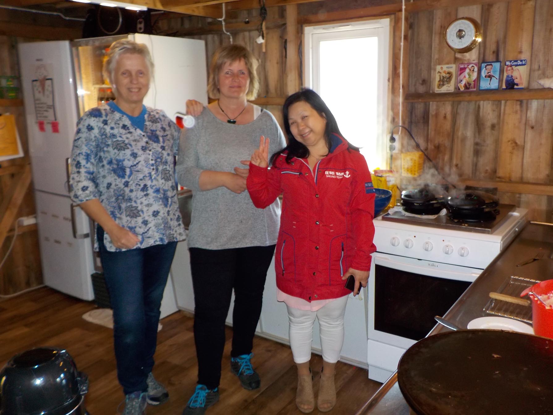 The woman on the left is from southeast Norway and said that though it appears isolated, people of the north have always been able to fish, and never starved like her ancestors who were farmers. She shook her head as she described her grandmother, poorly nourished, with ten children, not all of whom survived. I mentioned the bread made with crushed tree bark to extend the flour that was made in Sweden during famines. “Oh, yes, bark bread. They made that in Norway, too.” Fortunately, times have changed. How much we appreciate their community events!