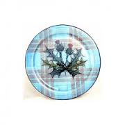 Since our visit, I’ve seen Tain pottery in several places. Today I went in a restroom in a visitors center in Lairg and saw a large plate of potpourri on the counter. Around the edge of the plate was the inscription “The Highland Council–Loo of the Year 2009”. It looked familiar somehow, so I pushed aside the potpourri to see the decoration on the plate and I found the distinctive tartan and thistle pattern of the Tain pottery.