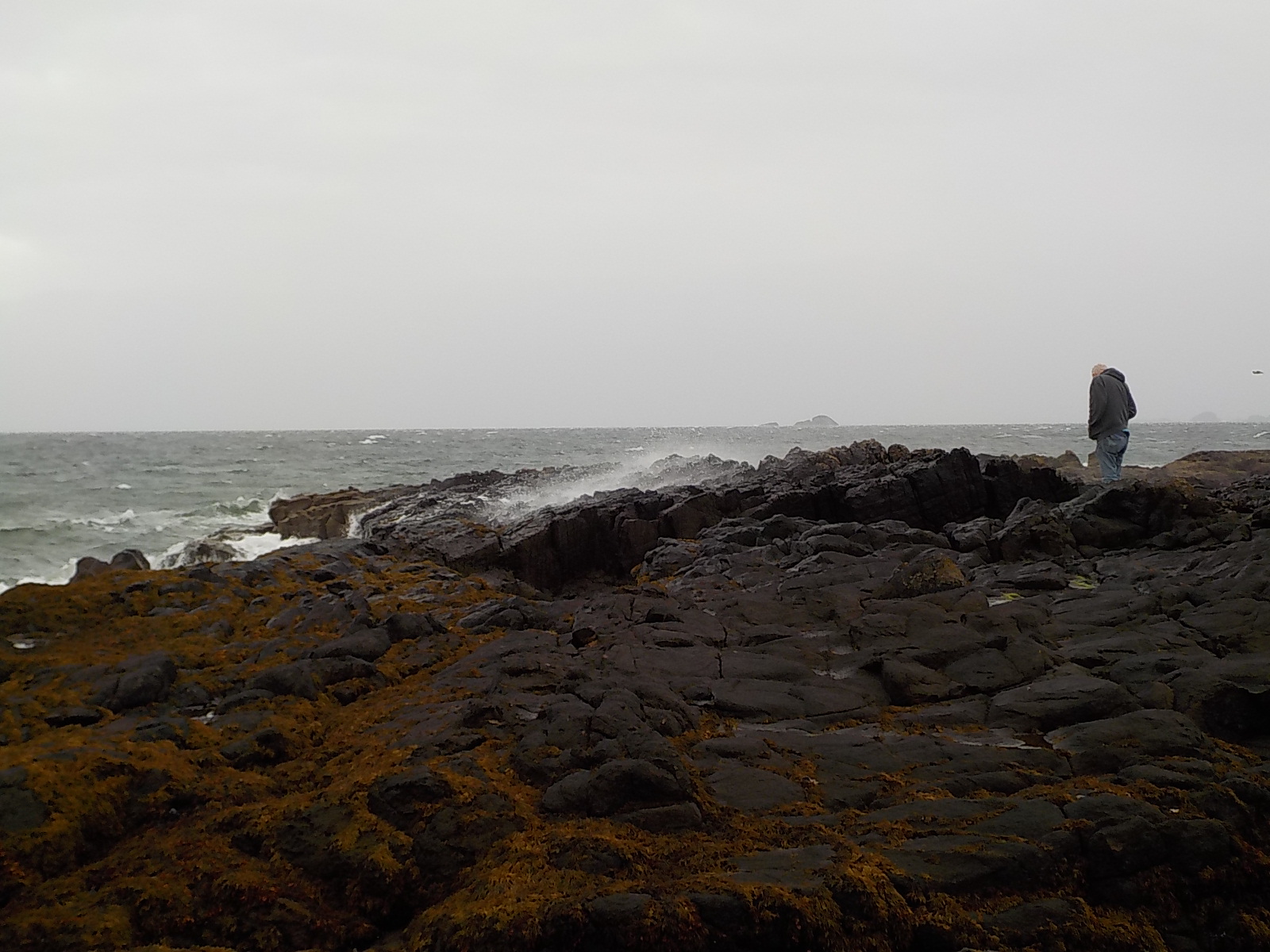 Despite the onset of rain, we stopped at Bornisketaig beach, where Jonathan stood in the spray.