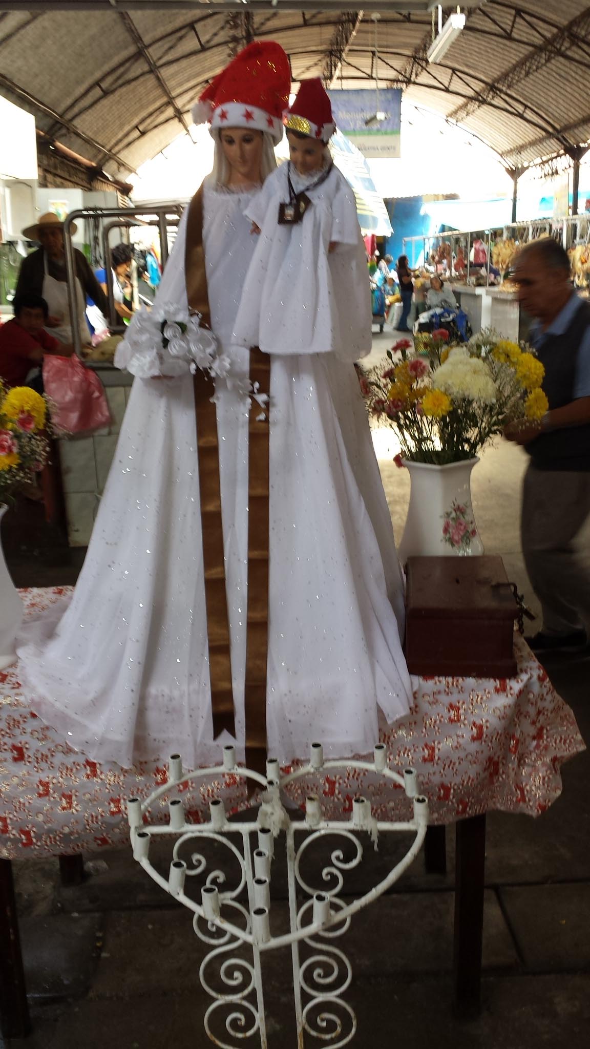 Another Virgin presides over the market. She seems to be ready for the season.