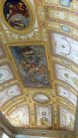 Many different artists were involved in the work. Some of the paintings are attributed to specific artists, while others are not. The ceilings are only part of the display. Around the rooms are busts of Roman emperors, and pieces of ancient statuary.