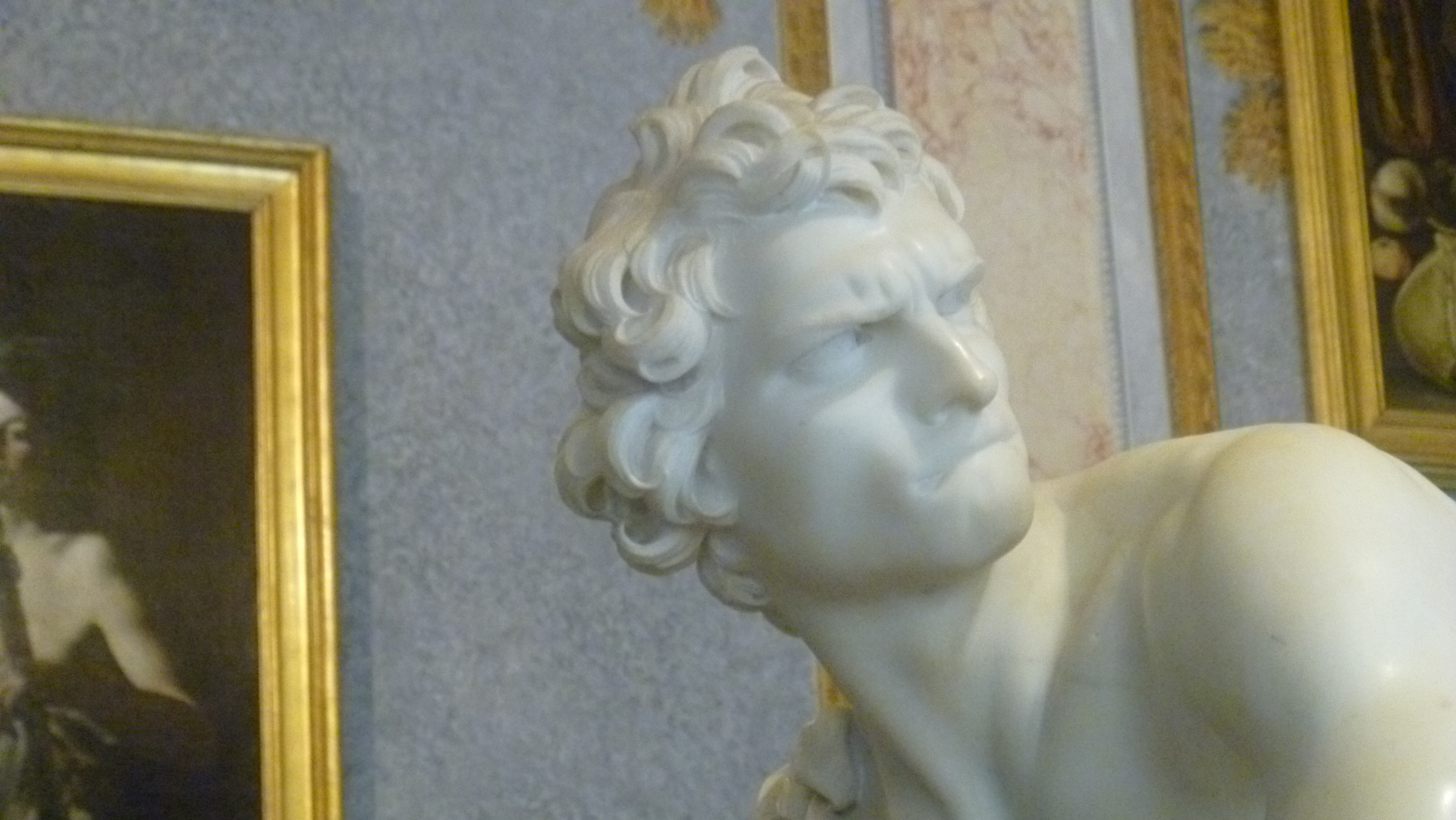 There are some other famous details in Bernini works at the Galleria Borghese. In his sculpture of Proserpina being abducted by Pluto and carried off to the underworld, Bernini’s depiction of Pluto’s hand gripping her thigh is viewed as a masterwork of sculptural technique. You can see his fingers digging into her flesh as though it was soft, not made of marble.
