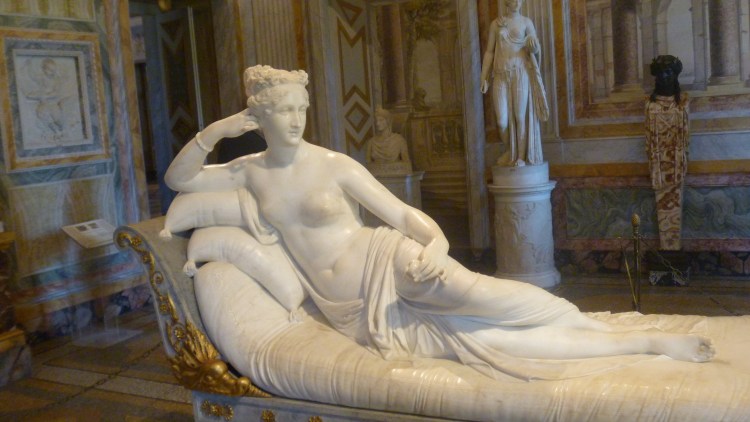 También hay una bella escultura de Paulina Bonaparte por Canova. Fue algo escandaloso cuando se dio a conocer en 1808, pero la figura semi-desnuda sostenía una manzana, así que no era (técnicamente) un retrato desnudo de la hermana de Napoleón, sino una representación de ella como la diosa victoriosa Venus, Venus Victrix. Tal vez debería ser “Venus Vixen”.