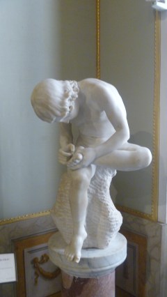 There are also charming works, like the three sleeping cherubs. This would warm anyone’s heart and it is all the more remarkable that they are made from terracotta. The boy pulling a thorn from his foot is another one.