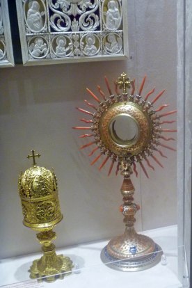 There was so much to see that was ancient that we barely stopped to look at the 20th century paintings. We took a brief peek in the room full of Latin Americanists: Diego Rivera, Siquieros, Orozco. There was also Dali and Picasso, but we were focused on looking at things that are unique to the Vatican. Ornate is the word. The monstrance below is decorated with Italian red coral, now highly endangered, controlled and valuable.
