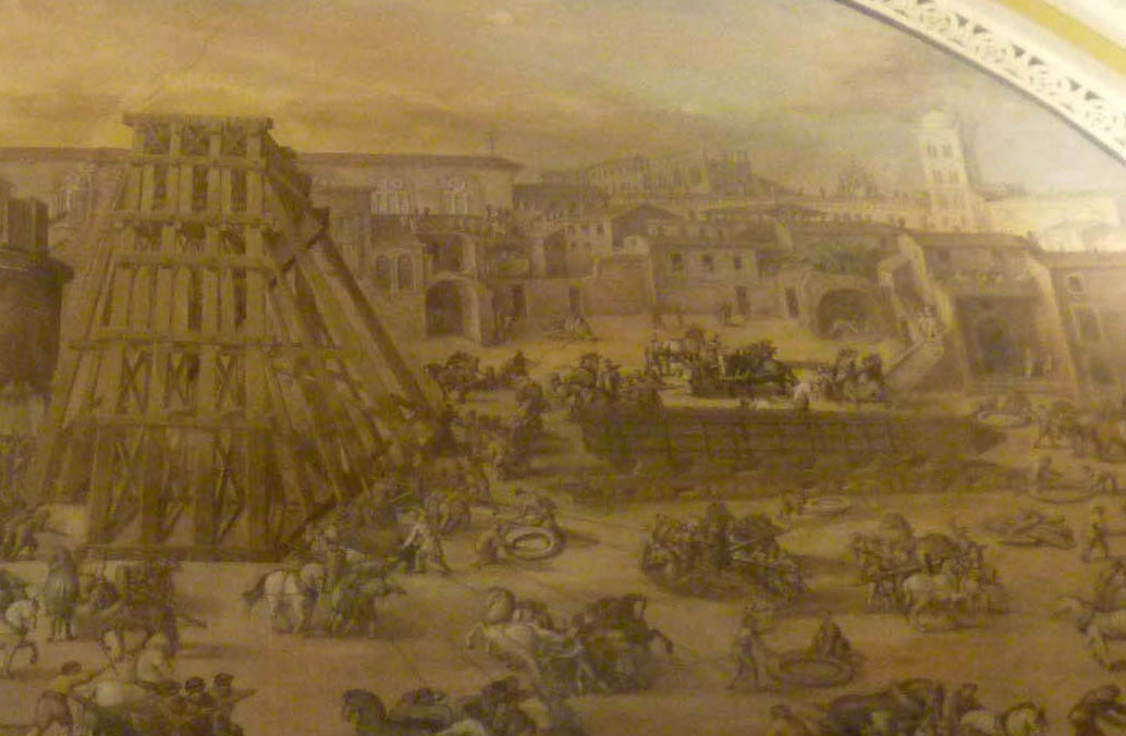 There’s the obelisk in the middle of St. Peter’s Square, too, that was brought to Rome from Egypt in 37 AD by Caligula and stayed put until it was displaced by St. Peter’s and moved into the center of the square in 1585. The Vatican even has a painting of the move.