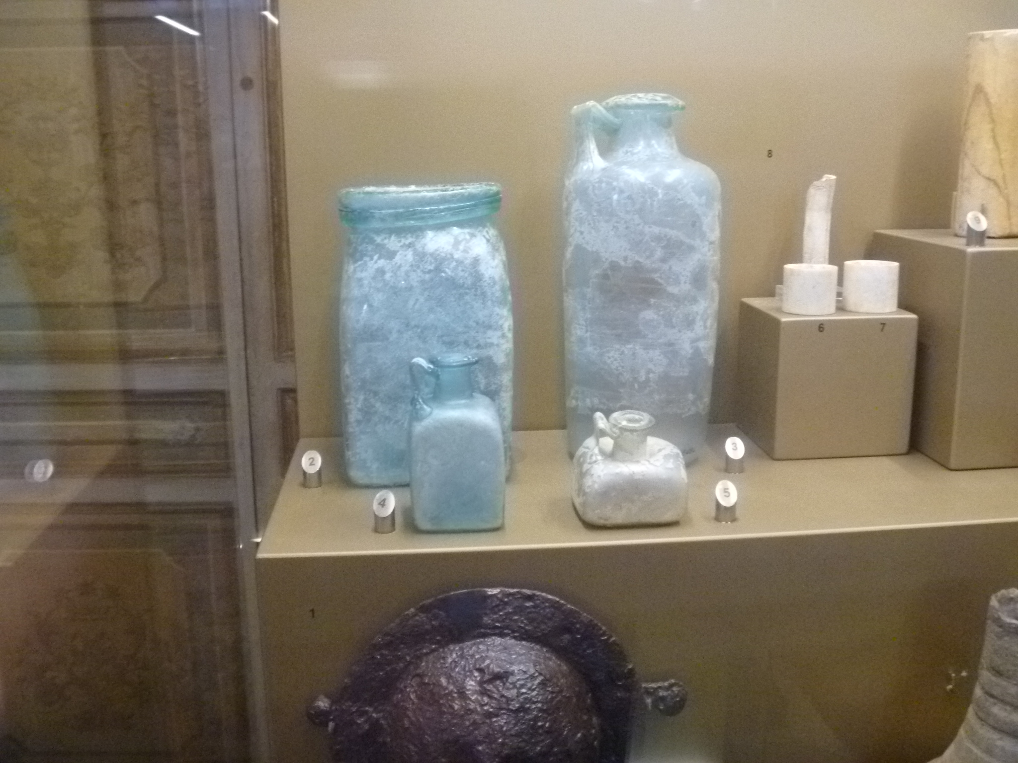 Durante nuestra visita a Roma, hemos estado buscando una gran exposición sobre vidrio antiguo, pero hasta ahora sólo hemos encontrado algunos objetos aquí y allá. Cuando usted google “vidrio romano” se refiere a la Corning Glass Museum en Nueva York. El Vaticano tiene algunos vasos de vidrio romanos muy interesantes. Siempre me pregunto cómo han sobrevivido todo este tiempo.