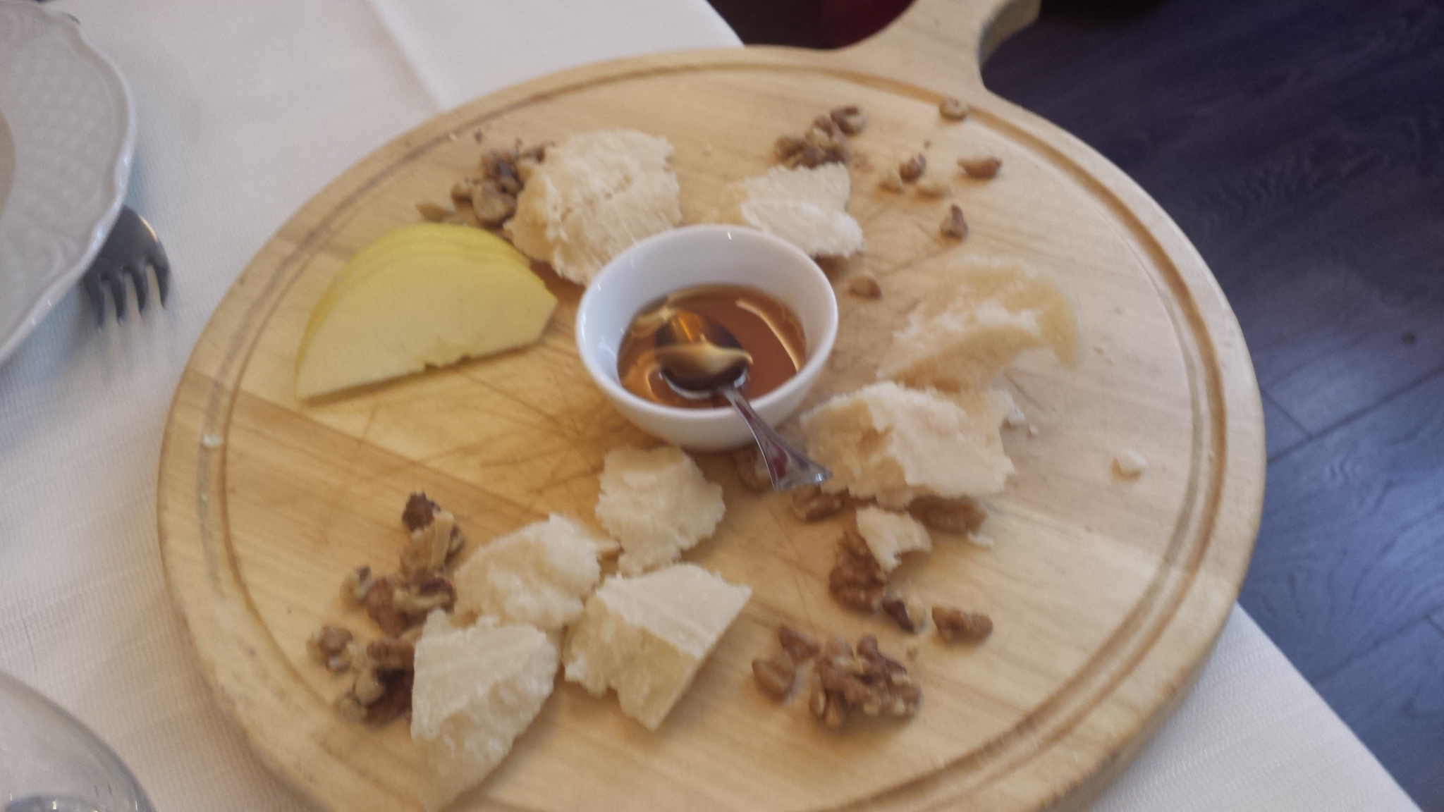 What we had looked into was where to buy salami and cheese, so we aimed for the closest parking area we could find and headed for Via Garibaldi. The two best known shops are on opposite sides of the same block and we stopped at La Verdi. We took home prosciutto di Parma (Parma ham), parmesan aged 30 and 36 months, and the local specialty culatello di Zibello. We stopped for lunch and had a parmesan sampler and some handmade tortelli (ravioli) filled with ricotta and spinach.