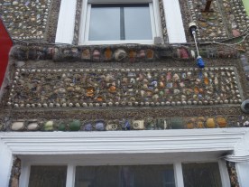 ♣ An appreciation of whimsy. Though fewer people today may believe in fairies, places where people saw fairies in the past are still marked, like the fairy bridges in Bundoran, or holy wells. There are decorative fairy houses, too. On a larger scale, you occasionally see a facade decorated with shells and broken pottery in seaside towns.