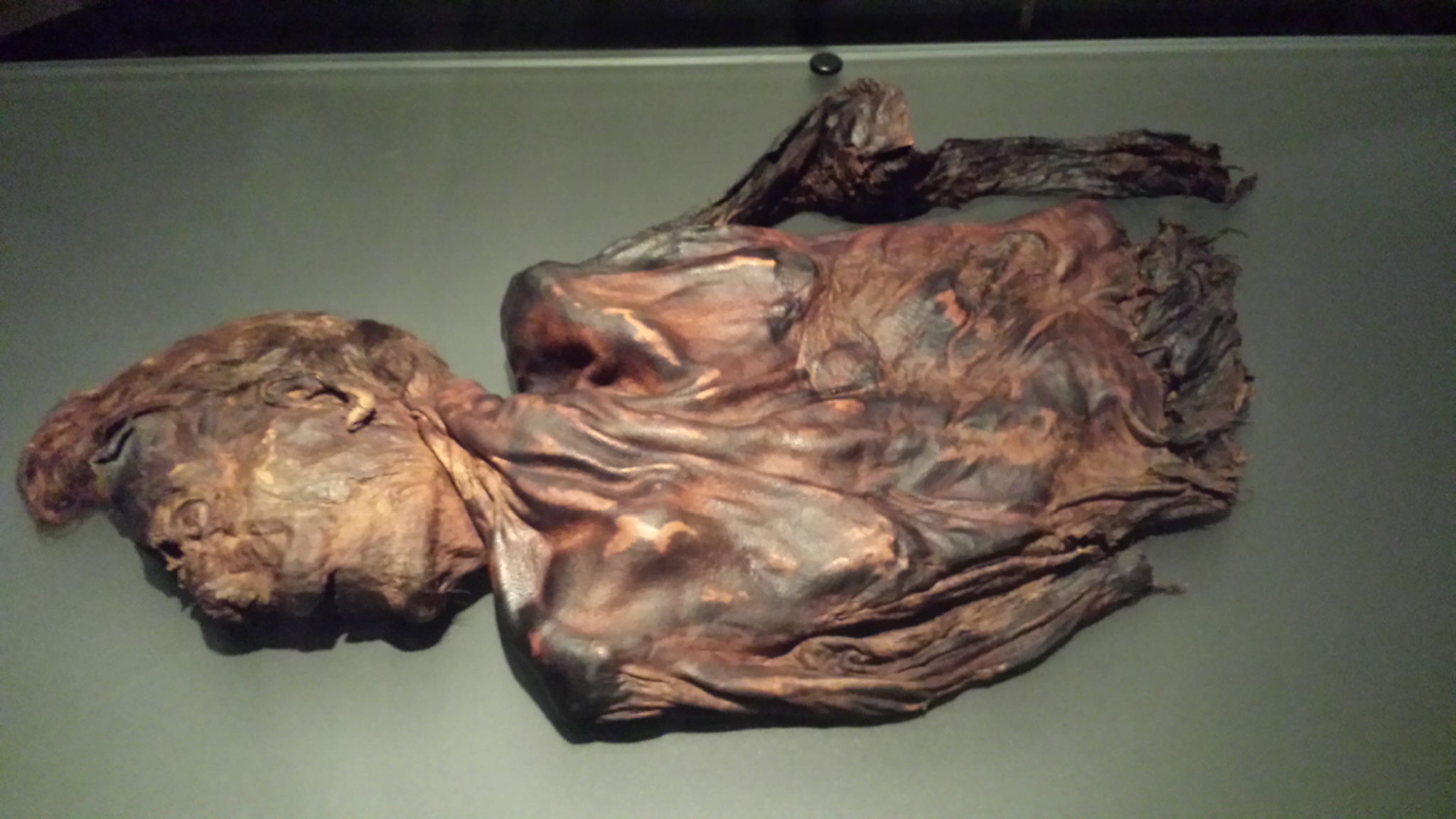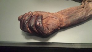 The other find, Old Croghan Man, had very long arms and big hands, suggesting he had been 6’5″ tall (missing his head and lower body, it was difficult to be sure). His well-manicured nails suggested he was not a laborer, but of high status.