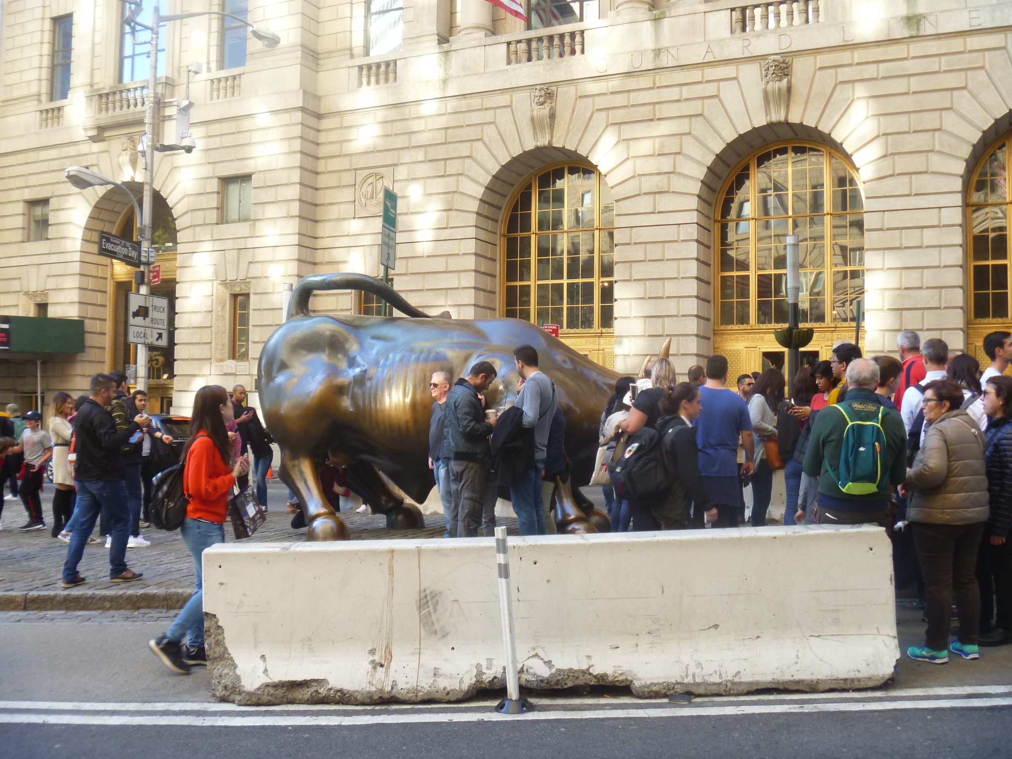 There is also the Wall Street Bull, though it was ass deep in tourists. The “Fearless Girl” statue facing the bull was put in place in March 2017 and was still there.