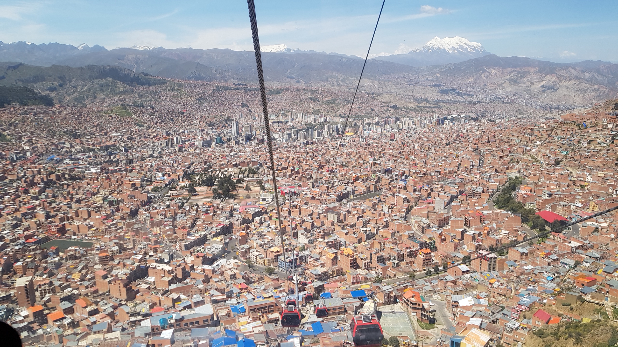 We followed the suggested plan, paying for the six tickets we needed in order for both of us to get back to the hotel. The ride was spectacular. From El Alto you can see snowcapped mountains ringing the valley, while back in La Paz, Illimani is a single huge beacon over the city. We could see the whole bowl of the city with it’s patch of twenty story buildings right in the center. It was easy to change from one line to the next. There are elevators and elevated walkways that meant Jonathan could avoid stressing his knees. Those who’ve ridden subways know how rare it is to find a seamless system without stairs. Our swing around La Paz, literally, was a good way to get a sense of the city.