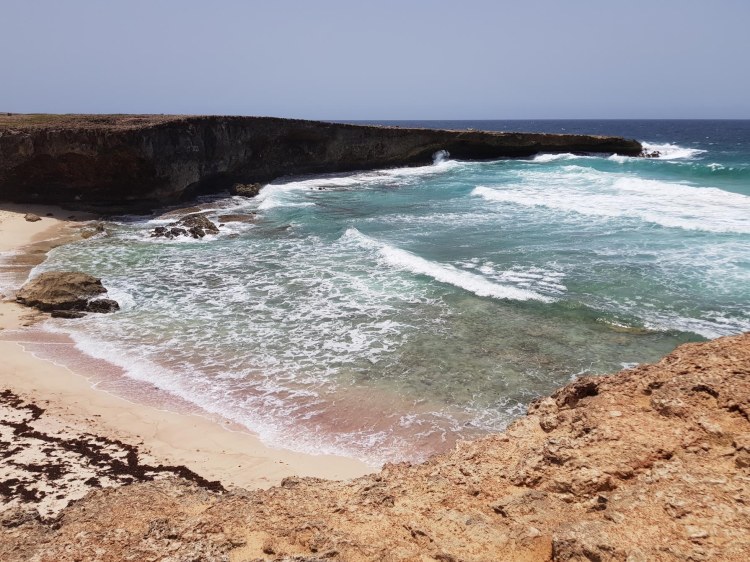 Our exploration headed up along the eastern Atlantic side of the island. When you look out over the ocean, the next land mass is either the island of Grenada or Guinea, Africa. The waves are larger, though broken by shelving rock. We walked from Bachelor’s Beach to Boca Grandi (in Papiamento, the local language) where kite surfers take lessons and practice. All day