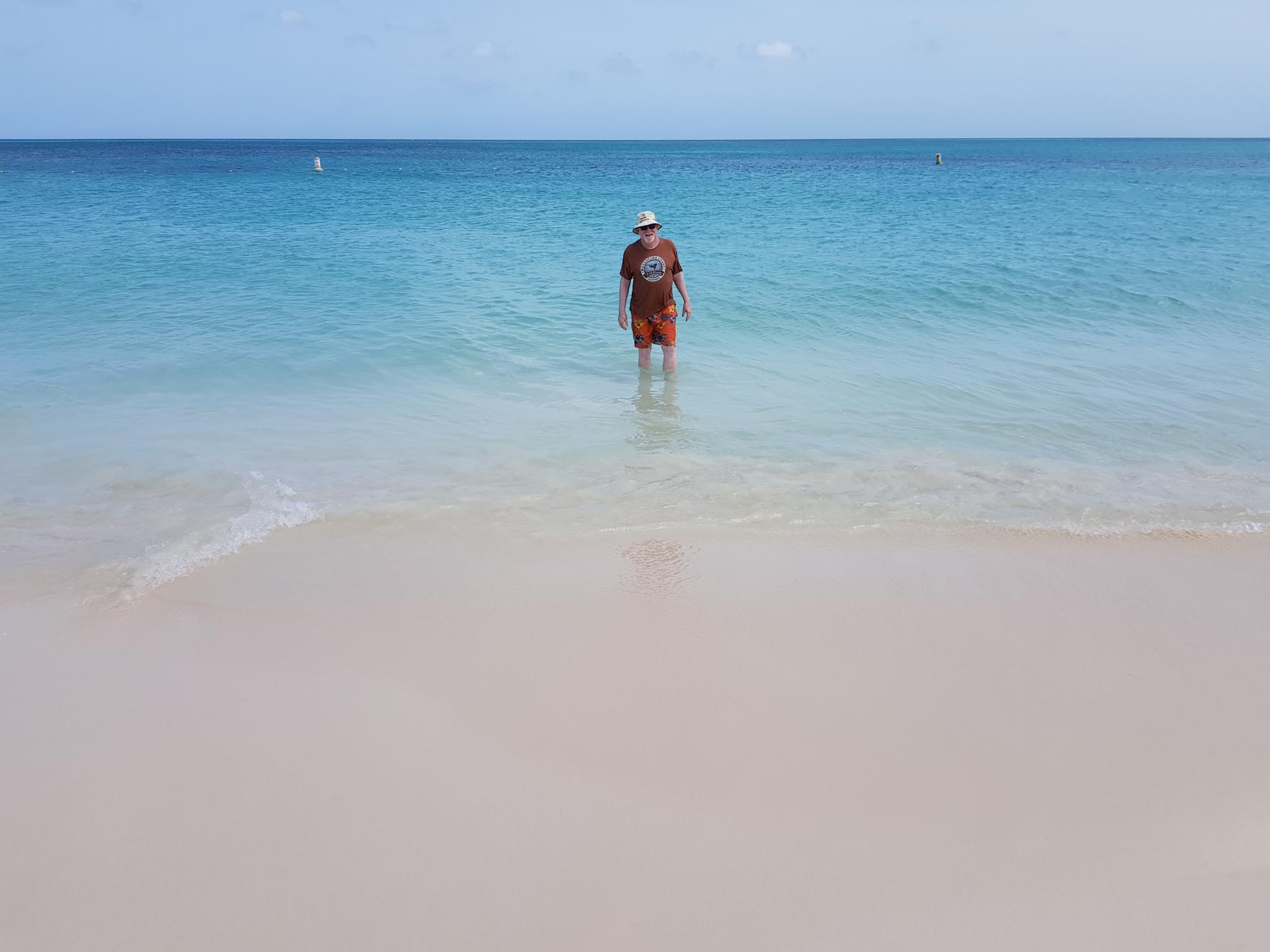 A neighbor told us to see Eagle Beach, a long, long stretch of white sand the borders hotels. It is lovely, but there isn’t anything to do but swim or sit in the shade. The sandy shore has no driftwood or beach glass and the water was cloudy for snorkeling. After some floating around, I went inside a nearby resort and got my hair cut, a great treat. Then we moved back toward Oranjestad to Divi Beach, smaller but similar. The beaches at the far north/west end of the island are still on our radar. A group of “old-timers” having lunch on Savaneta Beach told us not to miss Boca Catalina in the northern zone. It’s now on our list.