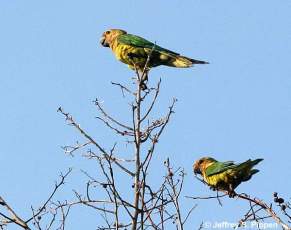There is a native variety of brown throated parakeet, called the prikichi. We saw the parrots zoom overhead though we never got a good at them. Our experience in Colombia was similar, the parrots never seemed to perch near us.