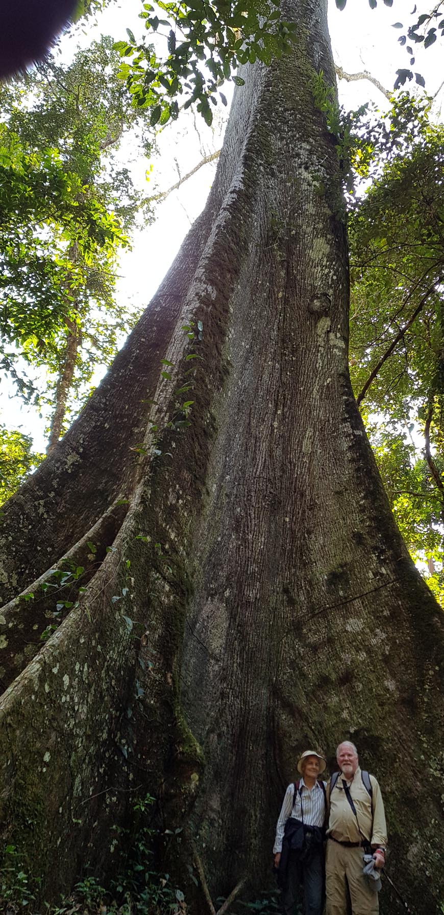 Giant trees like the one we posed by are rare, most were logged over the past 20 years as the population of the region expanded and foreign desires for mahogany furniture overcame the scruples of people who had been farmers. One of the lodge staff members told us that his mother trained to be a nurse, but took a loan from an uncle and made a handsome living heading into the forest to commission (illegal) tree-cutting, until there were almost no large, desirable trees left. At that point, nature reserves and national parks were established. Everyone shrugged and became tour reps. There is still a lot to see and lots of birds in the forest even if it is recent regrowth. The occasional giant tree is a reminder of what is gone now.