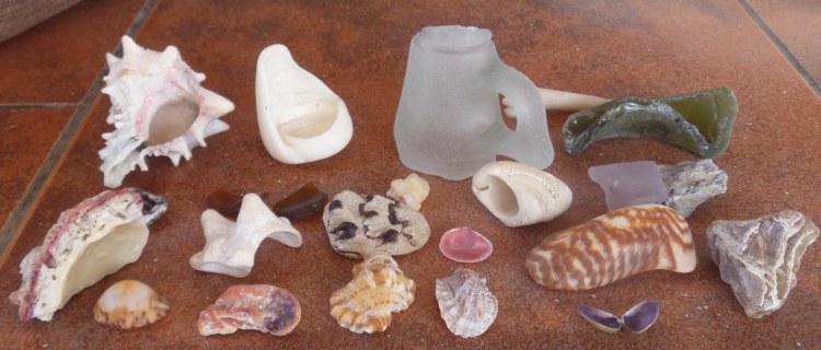 We had wonderful beach combing in many places. Playa Rosada is a place that many people recommend. I didn’t find the sand particularly pink, but perhaps the sun needs to be out. One of my favorite beaches is the stretch north of Valdivia and San Pablo and south of Montanita. We found a couple of very old pieces of beach glass, one colored lavender from the sun (these mostly date prior to 1915), the neck of a glass jug and the base of an old spirits bottle.