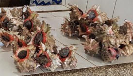 In addition are octopus and a range of clams, mussels and scallops, along with a species that I’ve seen beachcombing, but never eaten. There are huge fish, too, mahi mahi and tuna that can be six feet long. All these fish are cleaned, scaled, skinned, filleted or cut into steaks according to the buyer’s requests. The floor is wet from the water used to sluice off the countertops.