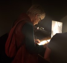 Another installation is a recreated studio of Vermeer with a discussion of whether artists of his period used lenses to project images to enhance the accuracy of their painting. I sat before a blank page with an inverted image pasted on the wall and a lens angled in such a way that I could draw the image on the blank page as if I was tracing it. I did a pretty good job if I do say so.