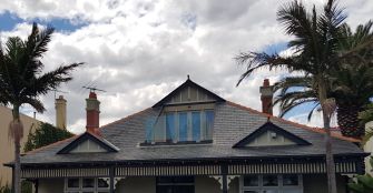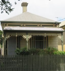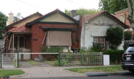 With high walls proliferating, the best picture I have of a traditional duplex shows that sometimes one owner is more diligent at upkeep than another. Many neighborhoods of Melbourne hold lovely old houses in a variety of styles.