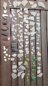 I began collecting along the beach well before we started our current travels. In Peru, I found a Fred Flintstone figure. During our three months in northern California, I collected abalone and a few tiny pieces of beach glass, the gems among the shell. At our next stop in Barcelona, thousands of years of occupation around the Mediterranean yielded lots of beach glass, yet the only person I met while collecting was a young woman from California. We shook our heads at the oblivious Catalans, passing up the treasure under their feet.