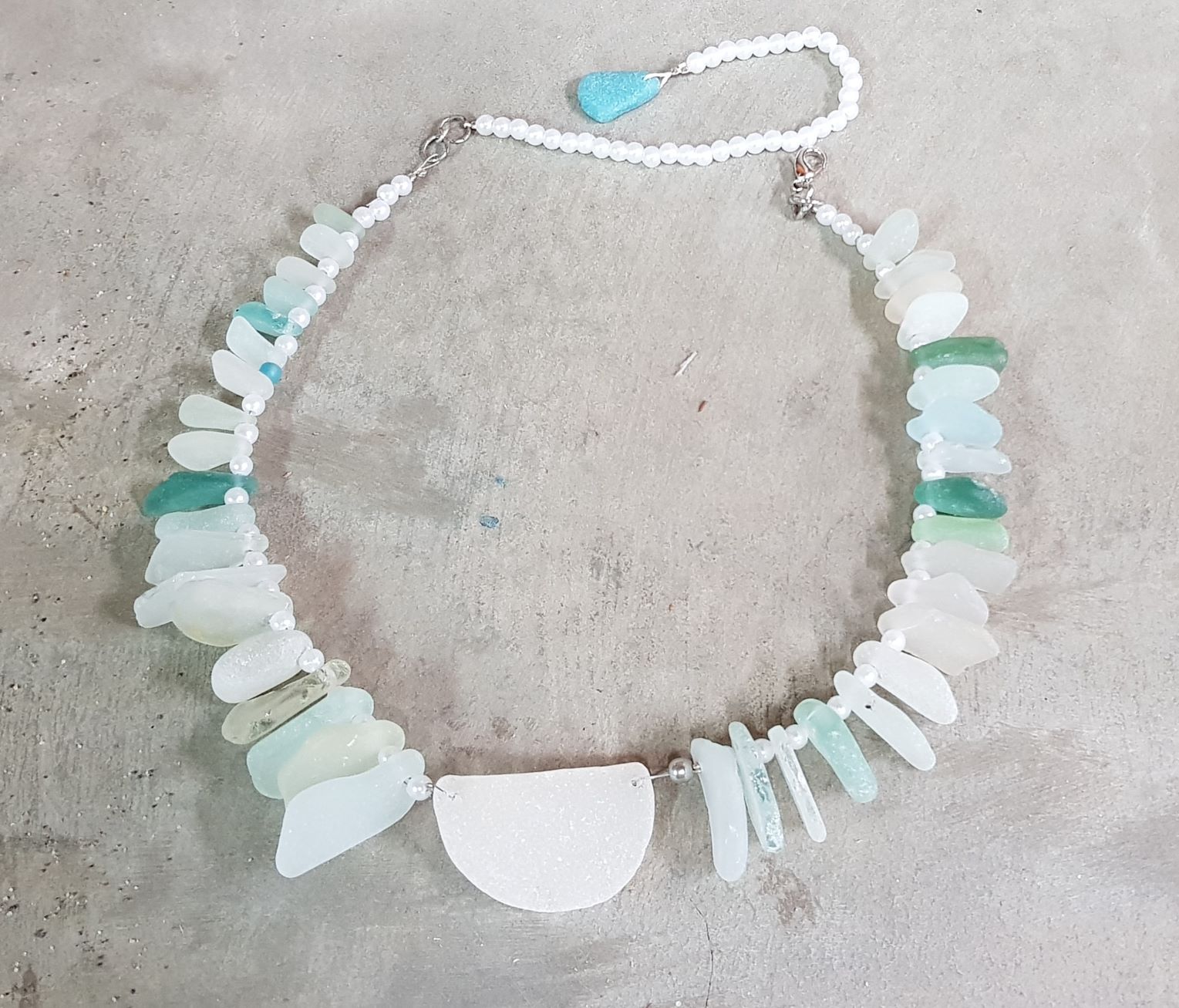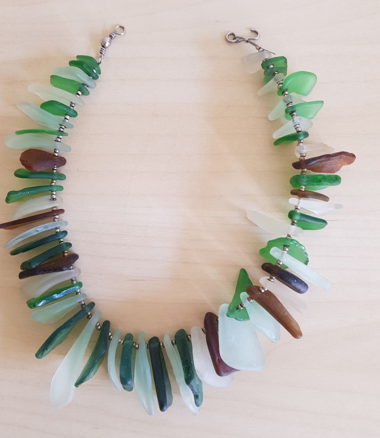My first design turned out well. I wear it all the time and it’s been a good conversation starter. People ask where I find the glass and when I tell them it is all along their local beaches, they seem truly surprised. I’ve continued making beach glass necklaces, trying out a variety of colors. There are lots of different variations that I still want to make.