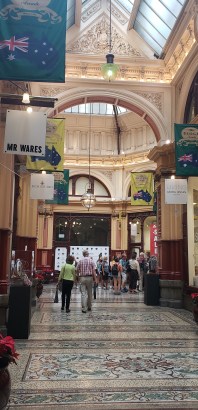 The covered shopping arcades also reflect turn-of-the-century style. The Flinders St. train station is a stately and highly decorative central place. In addition to all its flourishes, it apparently hides a ballroom on the top floor that is only open once a year for visits by architecture aficionados.