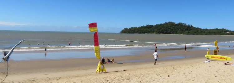Two blocks away is Kewarra Beach. On weekends there are lifeguards and the net to keep out box jellyfish. There are reminders about other hazards, as well.