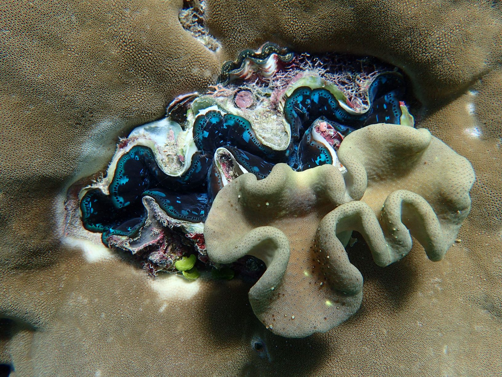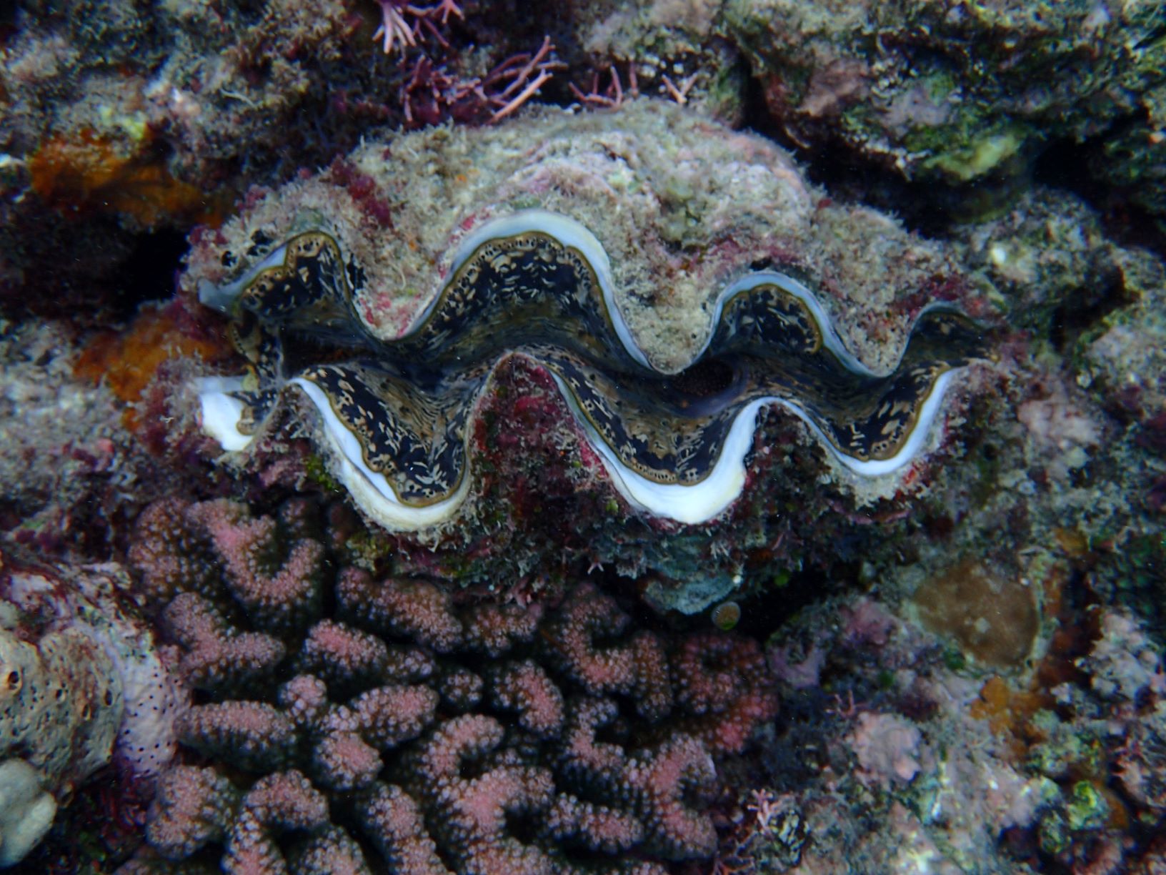 Our second stop along Opal Reef was more typical of a living reef, with 10% or less dead coral, and impressive outcrops of flat “table” coral. Water currents keep this section a bit cooler than other areas, thus the lacy, flat corals have survived.