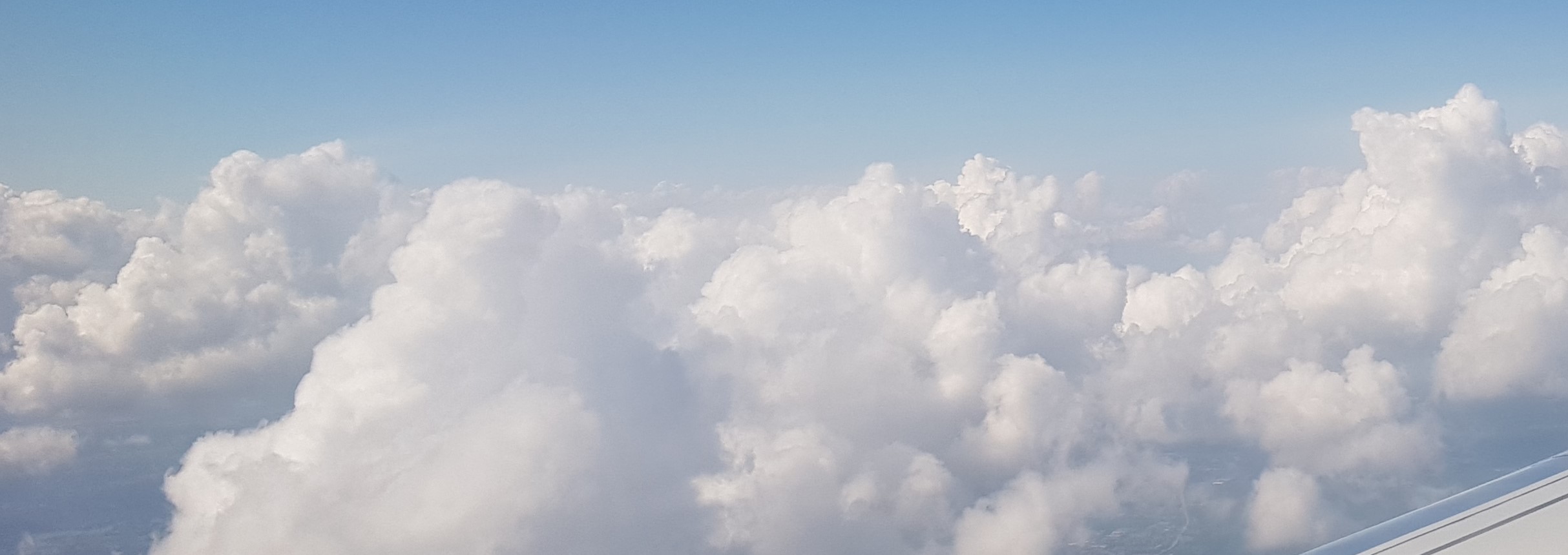 After six days, I headed back to Chicago on a full but uneventful flight. When I looked out the window I saw the tops of high, white cumulus clouds as far as I could see. It reminded me of being a kid and wanting to fly among the clouds. It would look just like this.