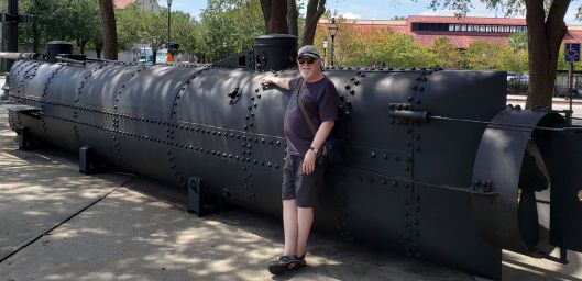 In front of the museum is a full size replica of the H. L. Hunley, a Confederate submarine used in the Civil War. The sub disappeared after it sank one of the Union ships blockading Charleston Harbor in 1864. A search for the Hunley was spearheaded by author Clive Cussler, who used the sub in one of his novels. His group was successful in finding the Hunley in 1995, over 100 years after it disappeared.