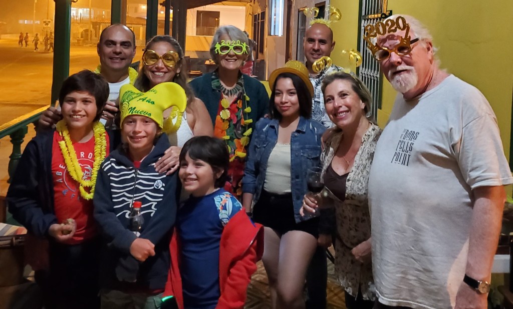 When we first spent New Year’s Eve in Peru, in 2006, we discovered that most people stay at home until midnight when they step outdoors to light fireworks and start dinner. After that, young people go partying until morning. We prefer to celebrate while trying to stay awake until midnight. This year it was easy, surrounded by family and neighbors. The young boys present had various glowing things, like bracelets, gloves, and sticks. Sparklers came out just before midnight and then fireworks started going off all along the beach.