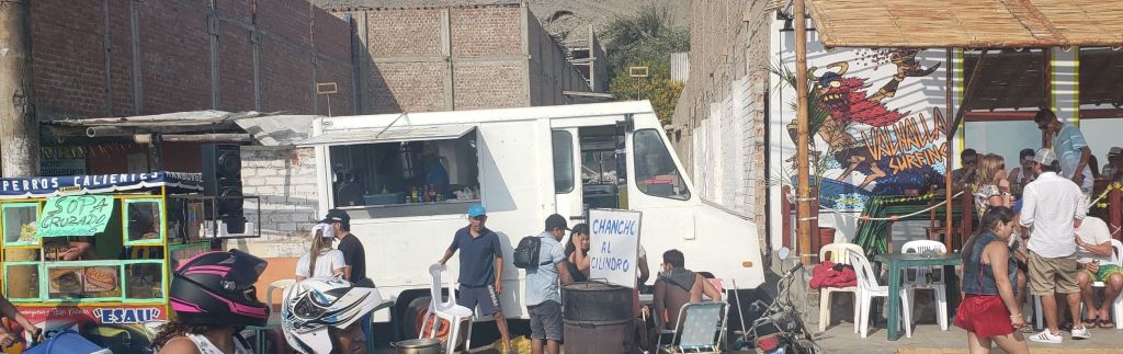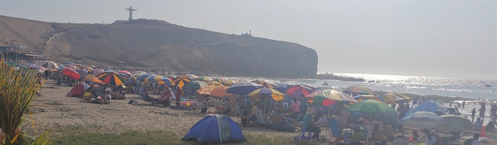 We know there are thousands of people on the beach for New Year’s Day in Lima. Every year it’s on the front page of El Comercio on Jan. 2. We didn’t expect the crowds to grow so big in Barranca. Maybe that’s progress. The trash collectors, street cleaners, and beach cleaners are the unsung heroes of the holidays, making it safe to return to the beach the day after. The cleaners were on duty before dawn on Jan. 1, and spent a long time cleaning up the mess left by revelers, who were busy making a mess all over again by the time the last of the previous day’s leftovers were being swept up.