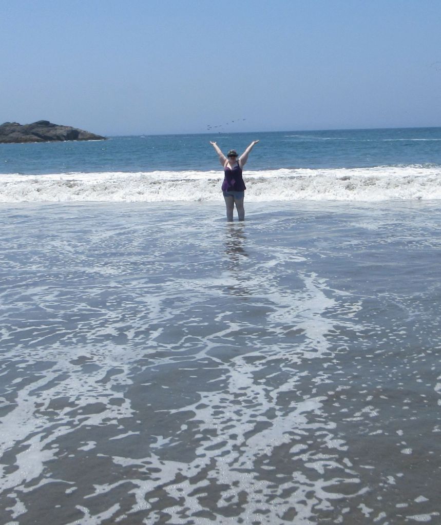 Tuquillo is a place where two small bays sit side by side, like two U’s joined in the middle. The car park is in the center. We chose the slightly more exposed, less crowded side, and enjoyed the water and walking along the shore. A spur of headland separates the two bays so Amanda and Jim went off to see what kind of marine creatures could be found sticking to the rocks. When they eventually returned, she brought news that there was an area of beach glass in the gravelly inlets on the edge of the hill. We all went to have a look and each returned with a small handful of beach glass. Most of it ended up in my jewelry workshop.