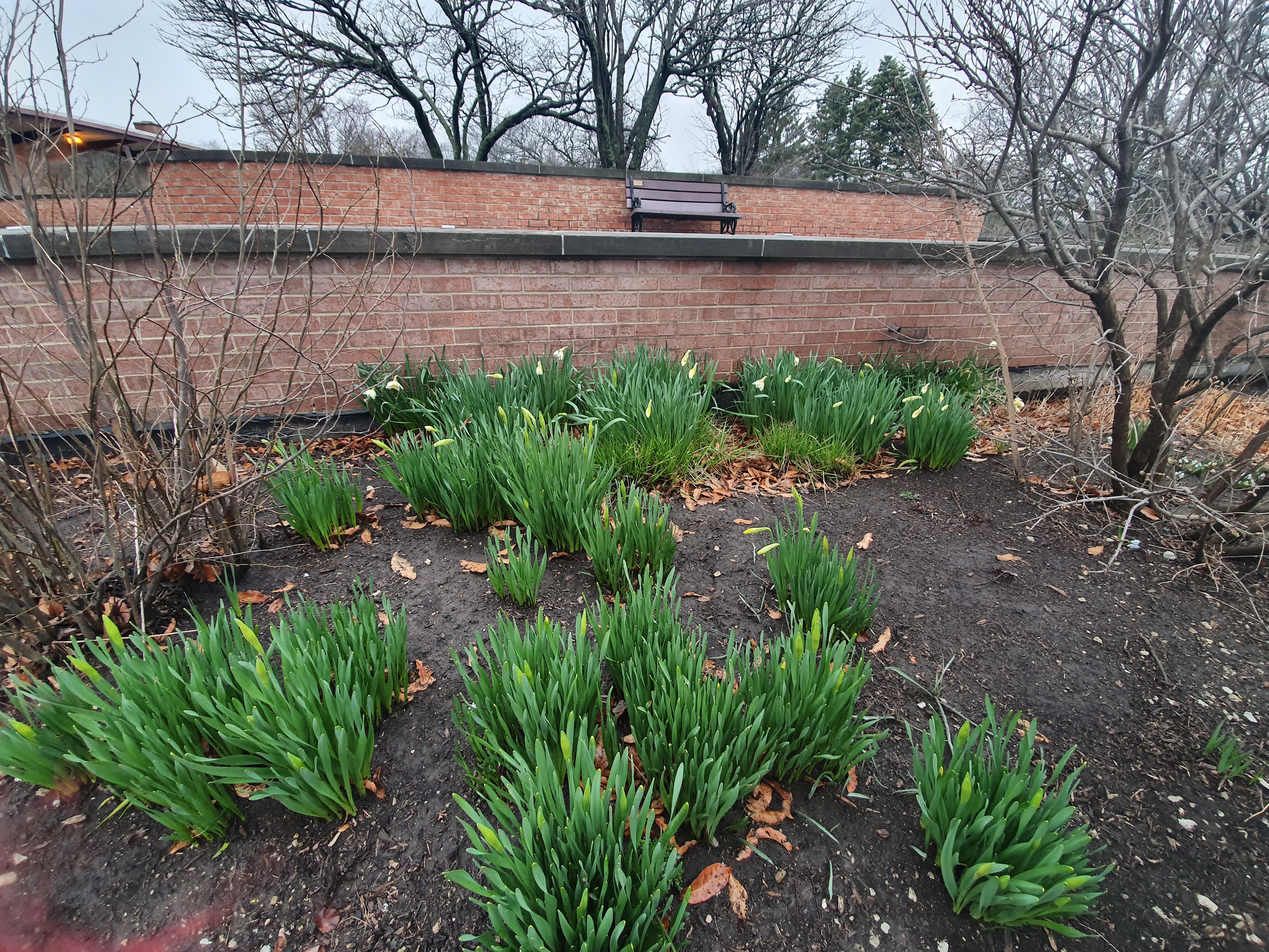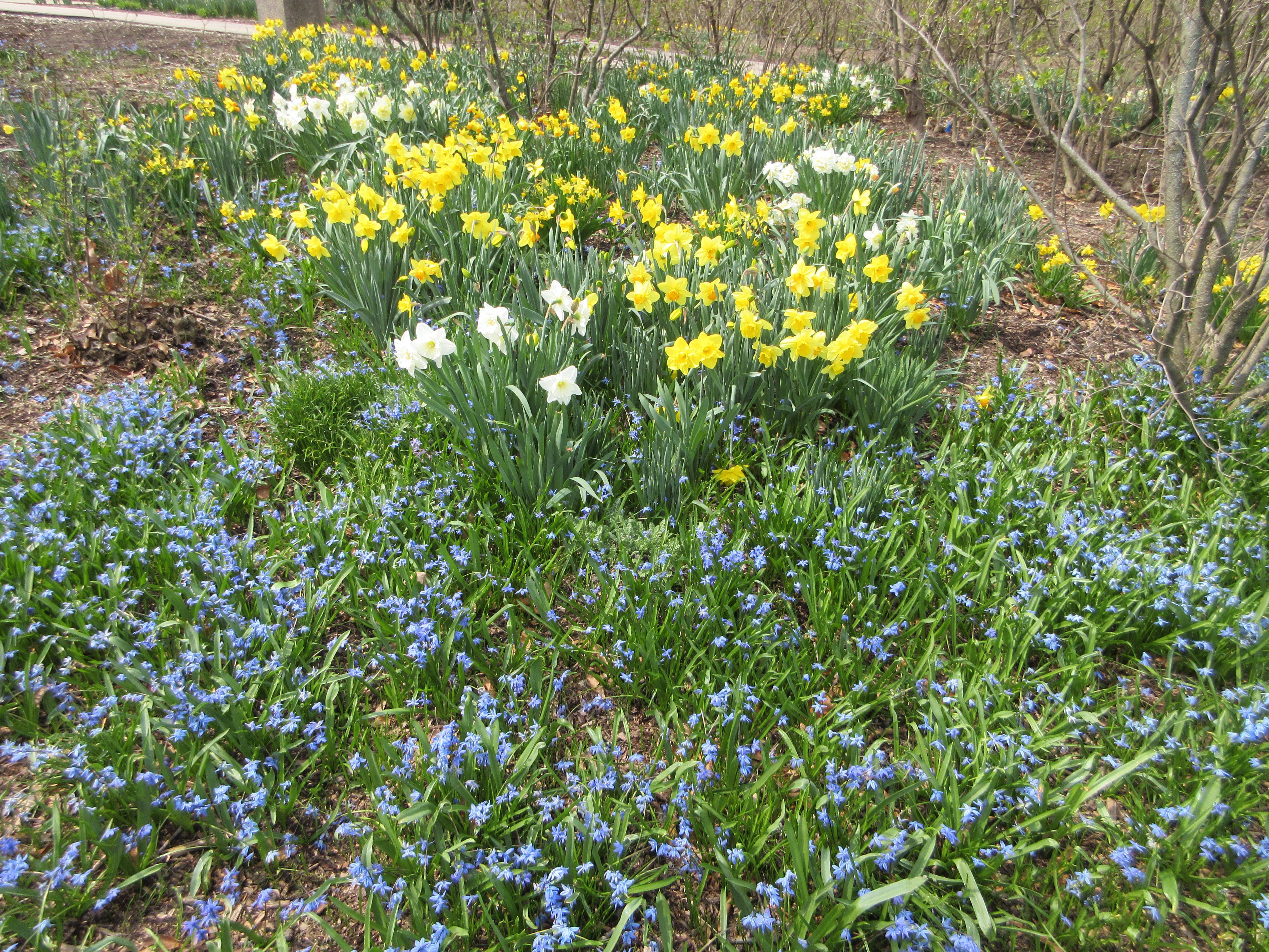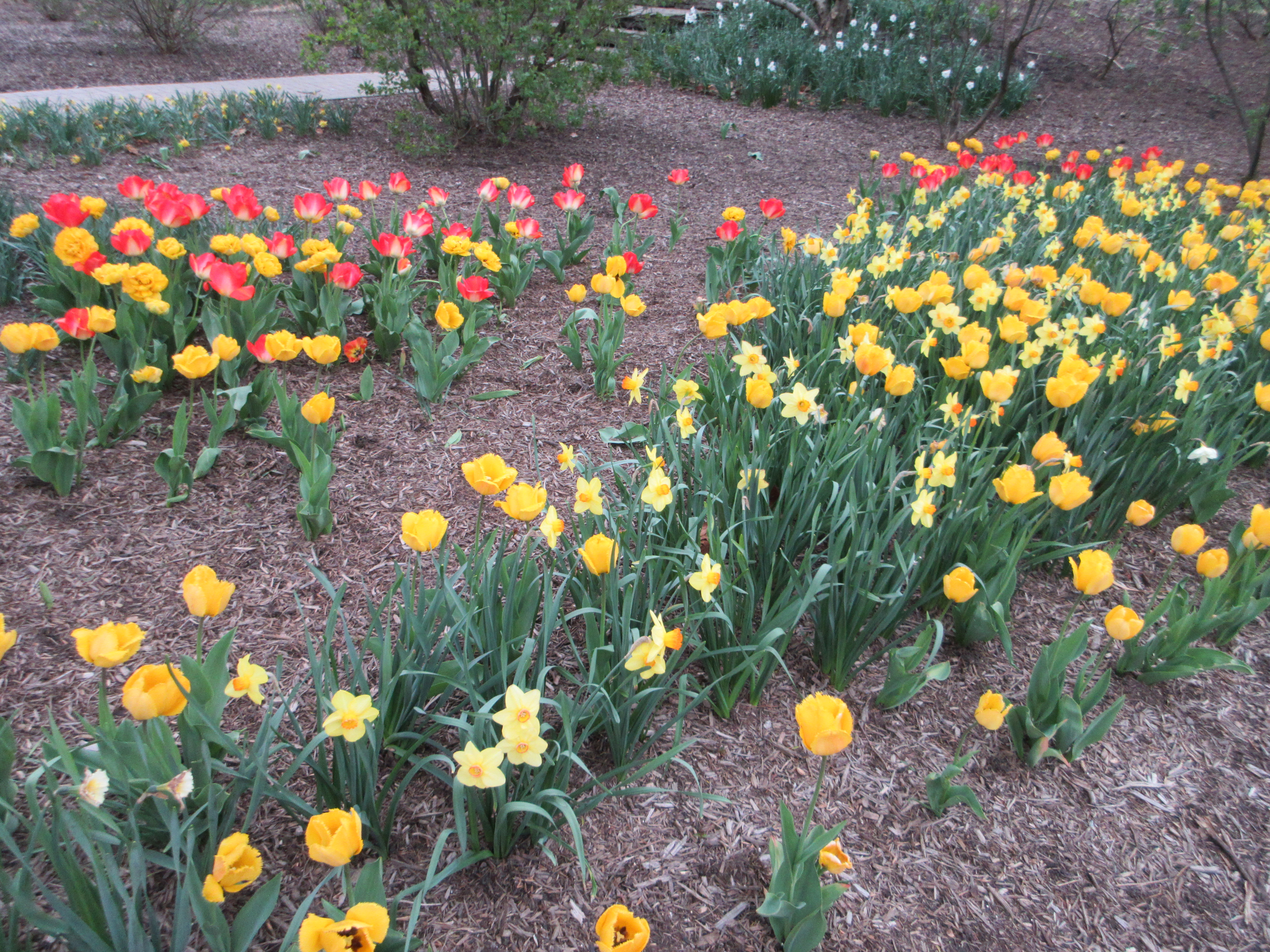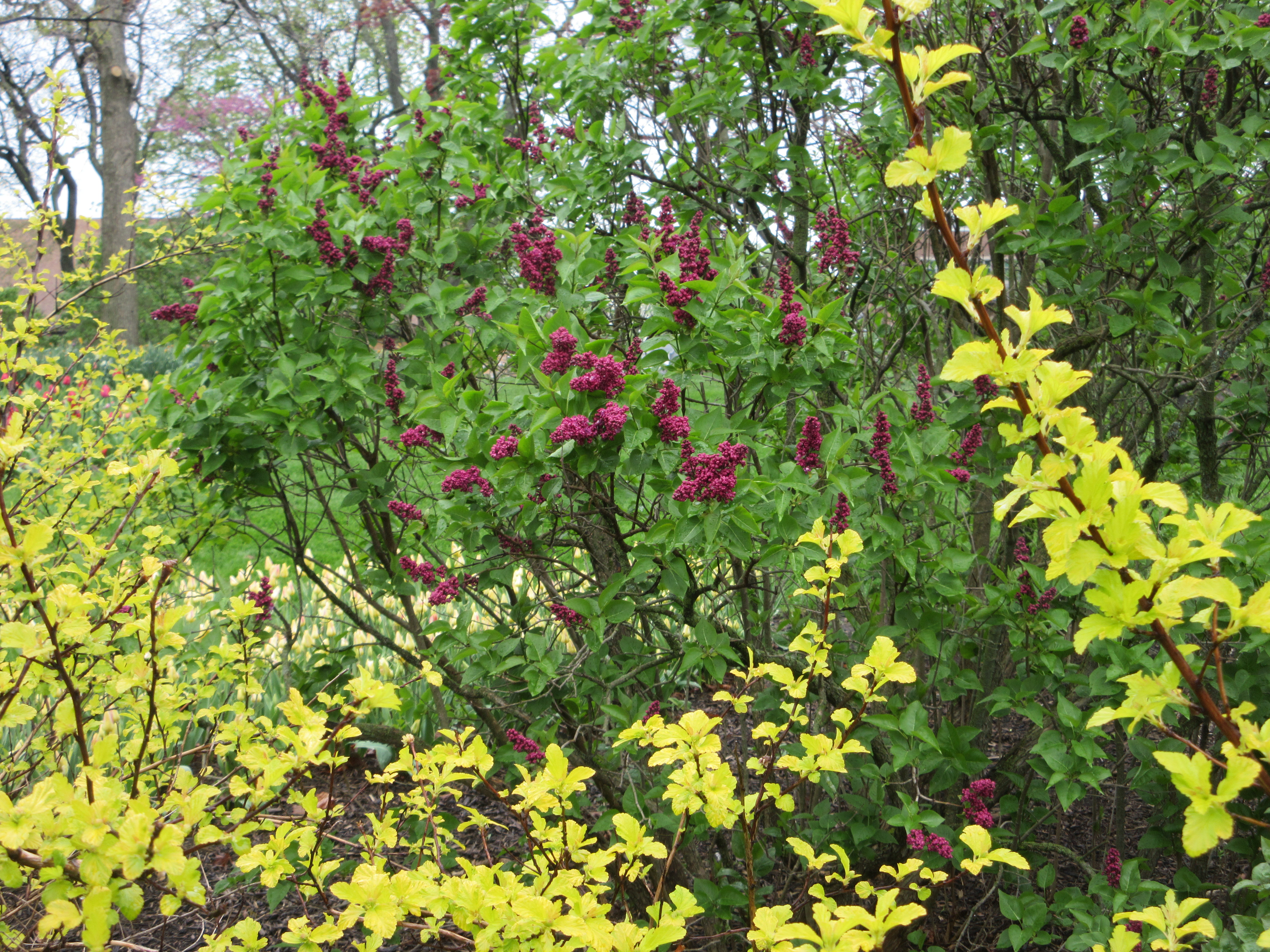 Since the first day of spring, we’ve walking Lilac Park twice a week, watching the arrival of the flowers. At first there was snow that melted rapidly, then chilly wind that demanded layers, gloves, hats, and scarves that continued into April. Finally, warmer weather has crept in. Now that it’s mid-May, we’ve been through the blooming of daffodils, a profusion of tulips, and the big event, lilacs, arrived this week. The bushes of blooms smell wonderful, not too strong, and the colors range from white through many layers of pinkish and purplish to a few dark purple blooms. This is the height of the year in the garden, and very much worth a walk. We’ve never found too many people here, making it easy to visit. My first photos taken in March are at the top, and the photos from yesterday are at the bottom.