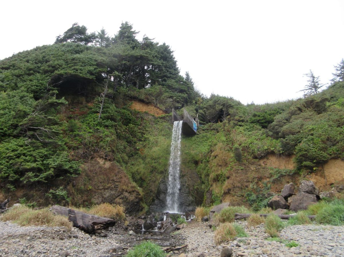 One day, we skipped over a long stretch of coast to visit Tillamook, famous for dairy products. The line to get into the factory store proved to be too long for us, and we continued out to the coast to visit Short Beach, a wonderful beach full of driftwood and waterfalls. It is also a beach that people visit with buckets. When we inquired from the third group that passed us, we found that Short Beach is a place that is popular for hunting agates.