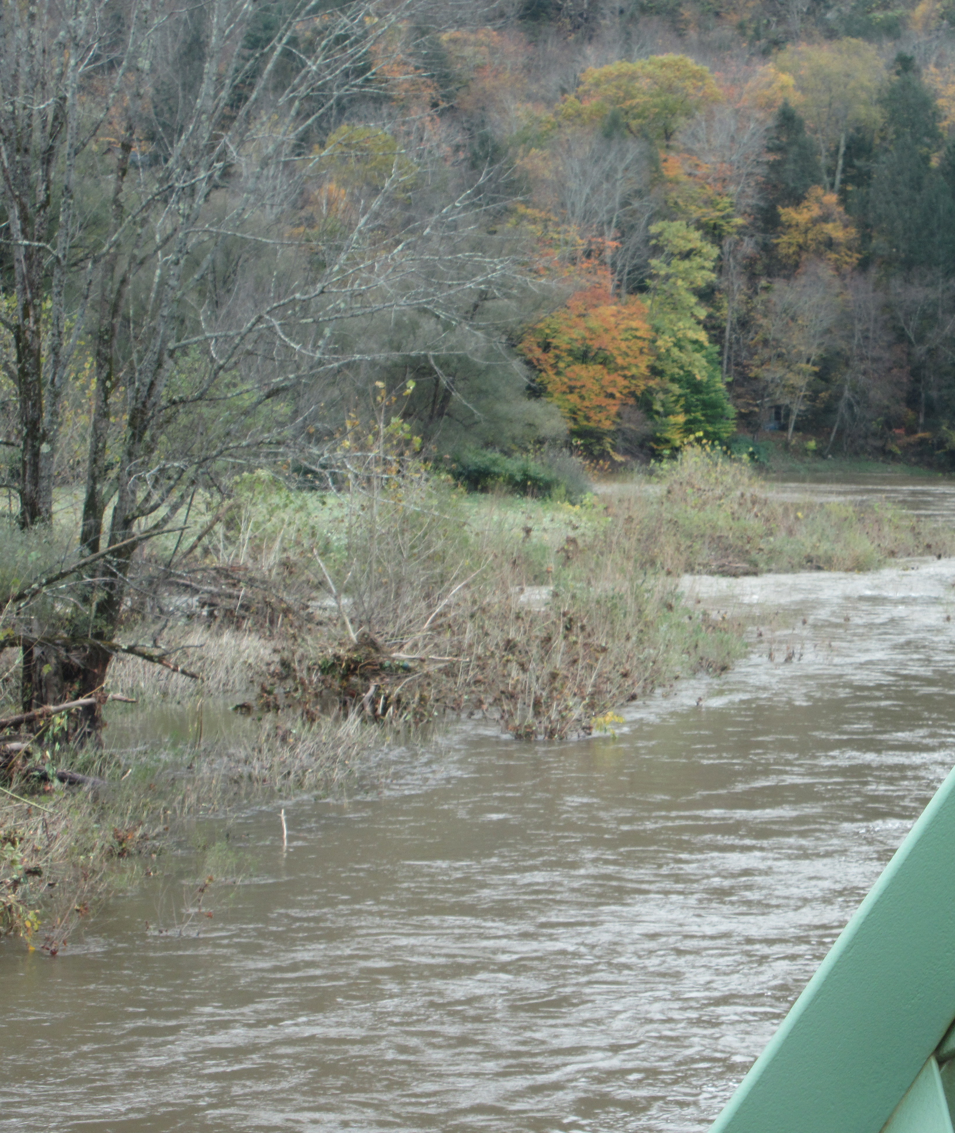 I drove back the way I came, ogling the flooding of low-lying stream banks and flood plains, glad that the rain had stopped. The rain muted the colors of the changing leaves, and many were knocked down by the rain, but the drive through the hills is lovely, and a weekday drive through this region is pretty quiet.