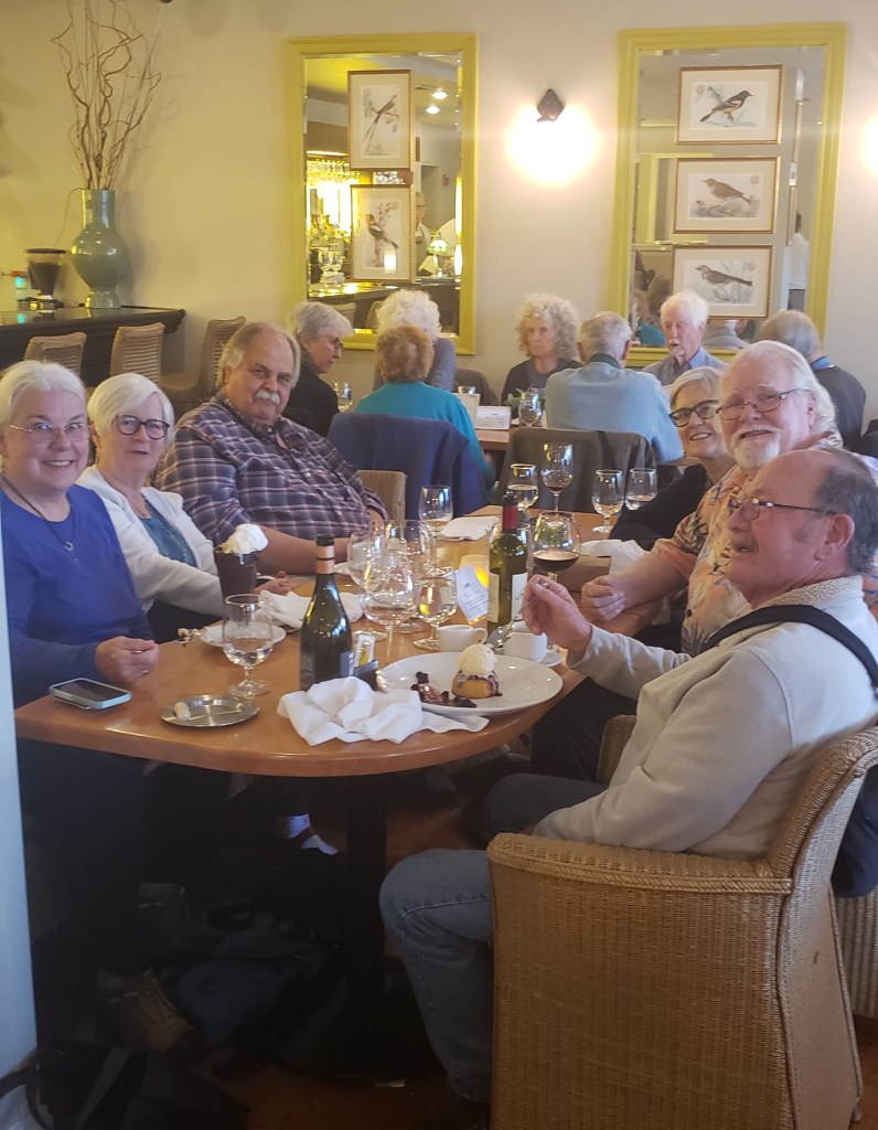 The next morning, we discovered Remix Coffee Shop and had delicious coffee and the crispiest croissants this side of Paris. We returned every morning that we stayed in Ashland. We whiled away the morning, then set out on the day’s adventure, a wine-tasting at Cowhorn Winery, where Paula has a subscription and would pick up her quarterly allotment of wine after our tastes. Paula’s membership provided two free tastings that Nora and I used, while Paula, Wayne, and Jonathan had what are called pairings, 3 oz pours of each of the four wines on the tasting list, and a wood-fired pizza into the bargain. Our tasting began at 1:30 pm, so the pizza was both well-timed and delicious. Cowhorn rosé is excellent, and we also tasted their Spiral white blend, a grenache, and a pinot noir. We chatted and sipped. This was not a serious ‘spit and dissect’ kind of wine tasting but a relaxed ‘sip and discuss’ that made a delightful afternoon.