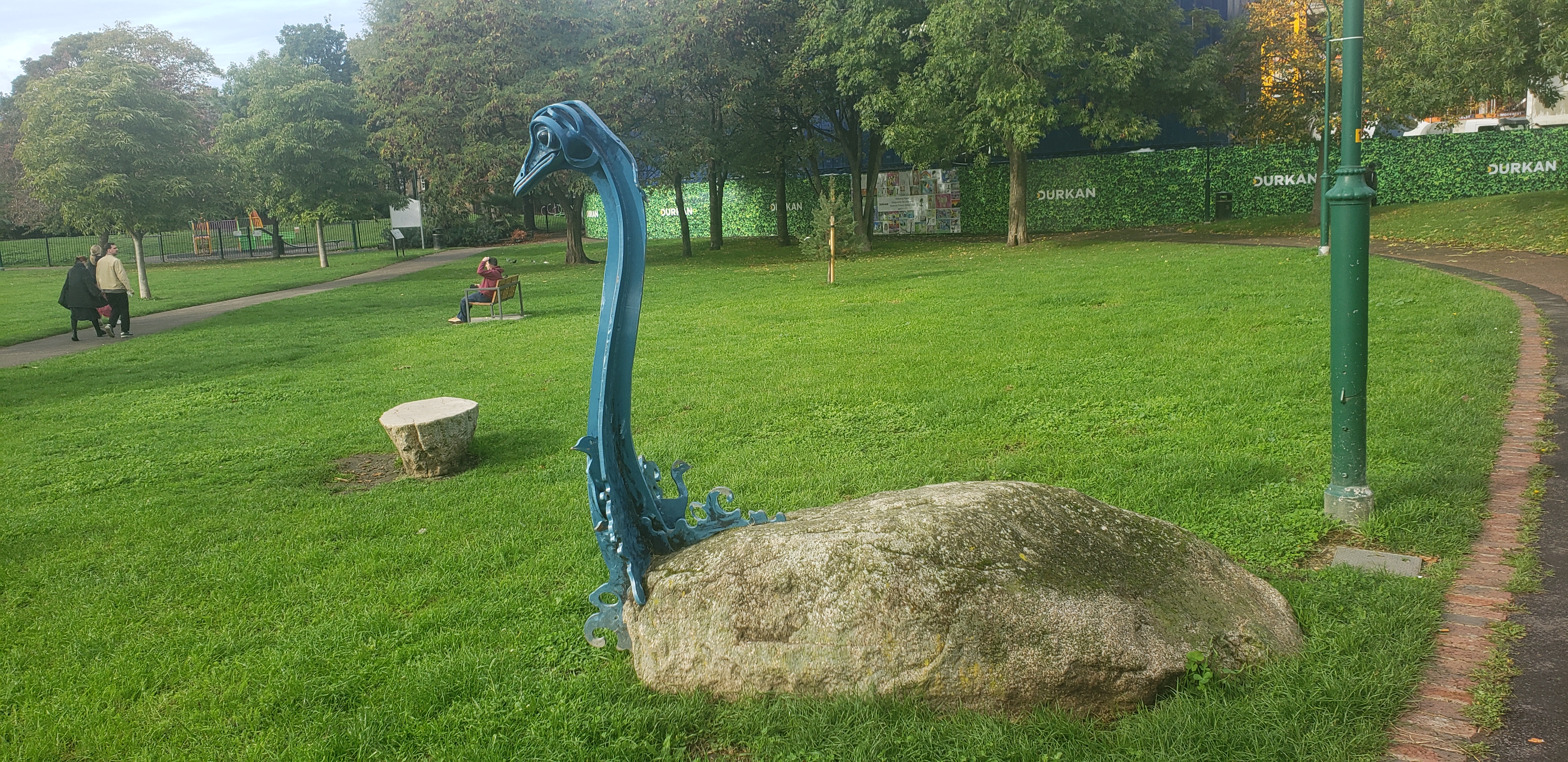 On the way to the closest large grocery store, we cross Pasley Park, where a pair of boulders have been turned into birds. We’ve seen a few live birds, too, the dramatically colored black and white magpies, and rose-ringed parakeets (much larger than pet budgies) that escaped from a cage somewhere. Robins chirp in the bushes. Last night’s sunset was spectacular. All this in the middle of the city.