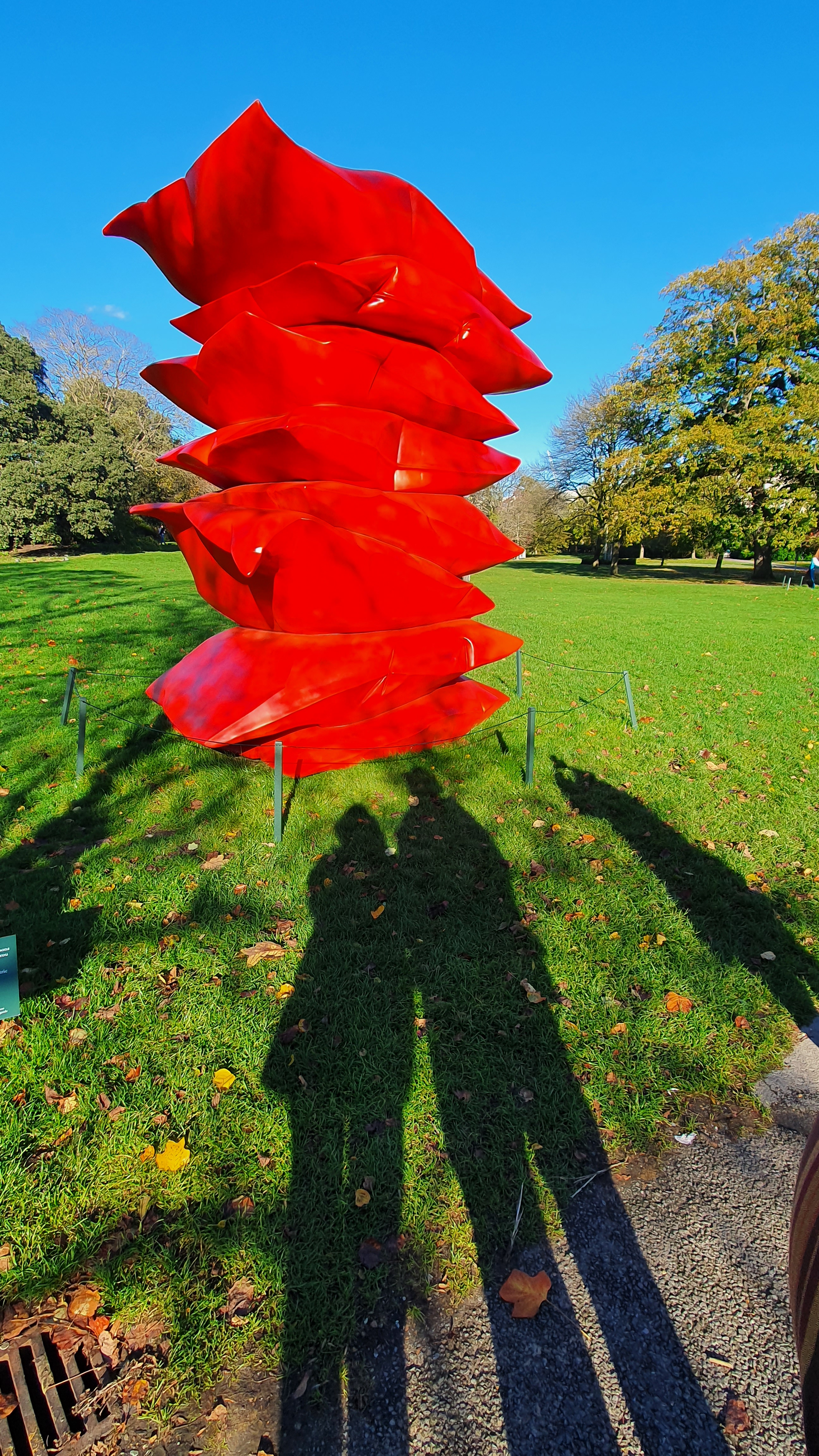 After our pause for coffee, and a very good, tiny red velvet cake, we continued on to the gardens on the southeast corner of the park, where works of contemporary sculpture were placed during the Frieze art fair. The pieces will be in Regents Park for another ten days, and we were able to stroll around and look at all of them. I like to see what is being offered for sale, since I don’t follow contemporary art. My favorite was a set of “chairs” that looked like their hair was on fire: