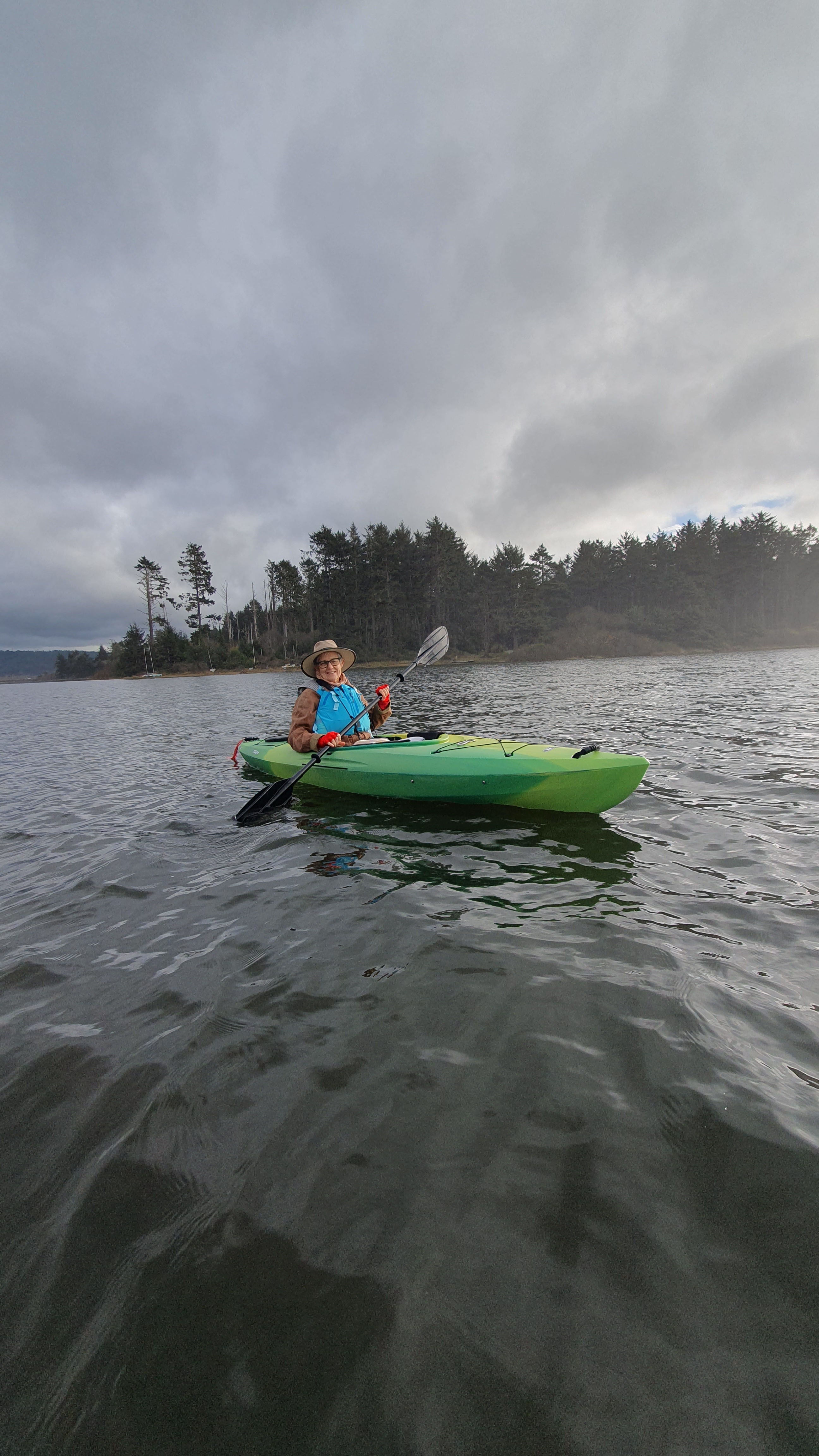 The next day, we stopped at Piled High Deli for sandwiches and took them to Big Lagoon for a picnic lunch and some agate hunting. Everyone found a few tiny agates. We strolled the beach, and took turns going out in Amanda and Jim’s kayaks. It was a beautiful day for a ride around the lagoon, and we stayed until the afternoon clouds started to come in and the temperature began to drop.