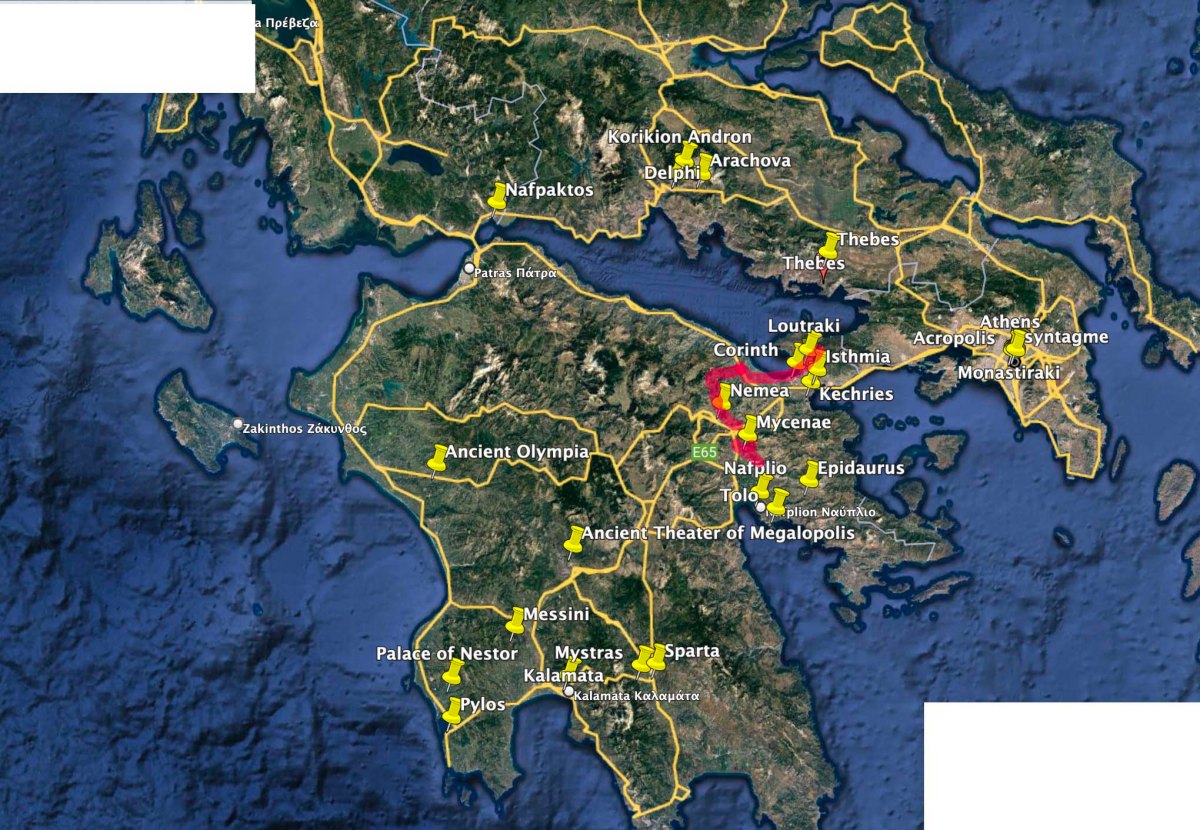 We started the day with ancient Corinth, Akrokorinth, a very large site, an ancient city. When I read a brief history of Corinth, I found there is no brief history. Corinth was founded by a descendant of Zeus, the Triton Oceanus, or Sisyphus, depending on what myth you like best. The city was visited by Herodotus (484-425 BC), Thucydides (460-400 BC), Aristotle (384-322 BC), and Pausanias (traveler and writer, 110-180 CE).